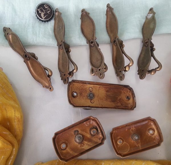 Agarraderas, tiradores. Conjunto de 7 unidades. En latón. Piezas para reutilizar