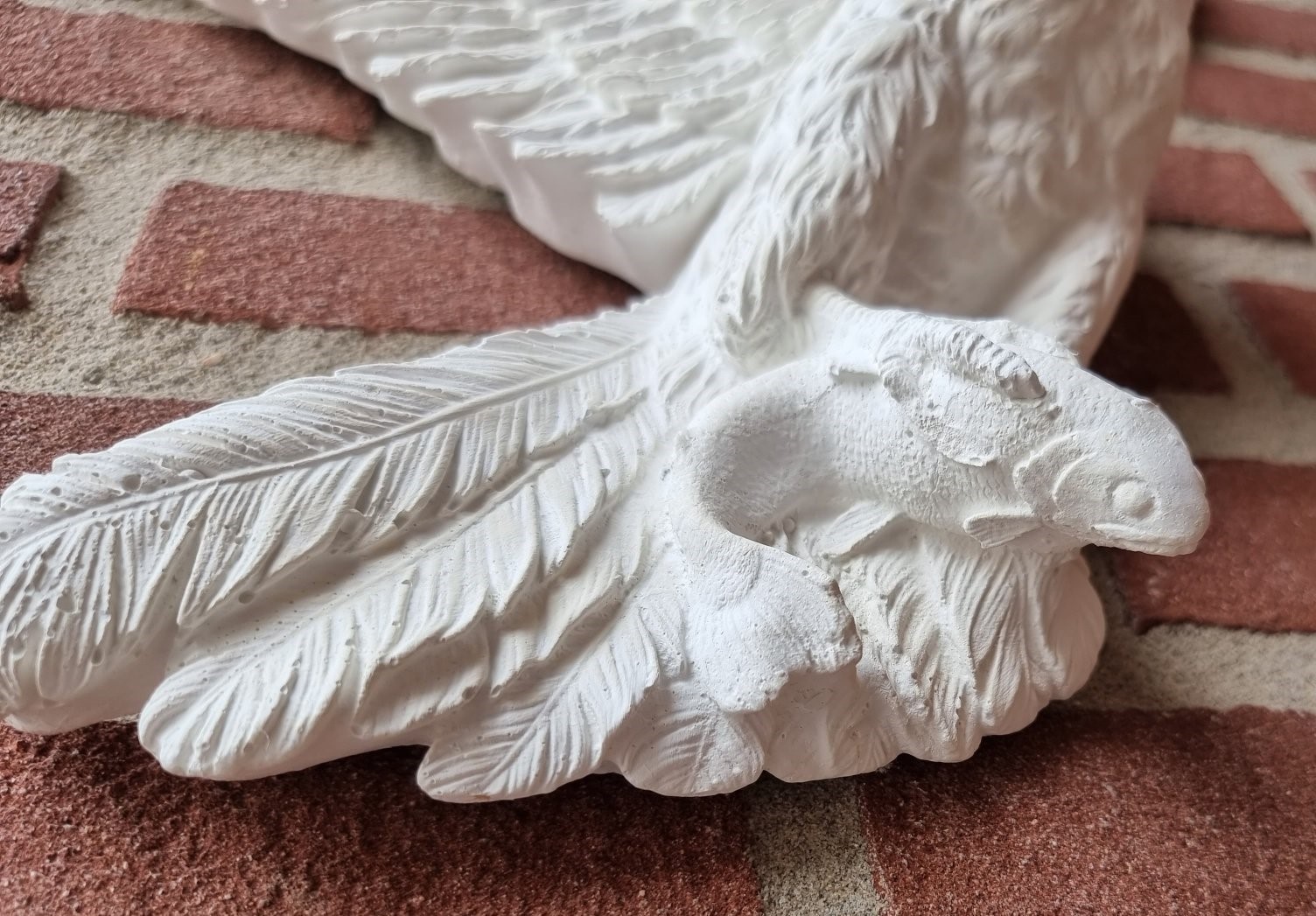 Águila en yeso blanco. Enorme escultura. 40 cm altura.