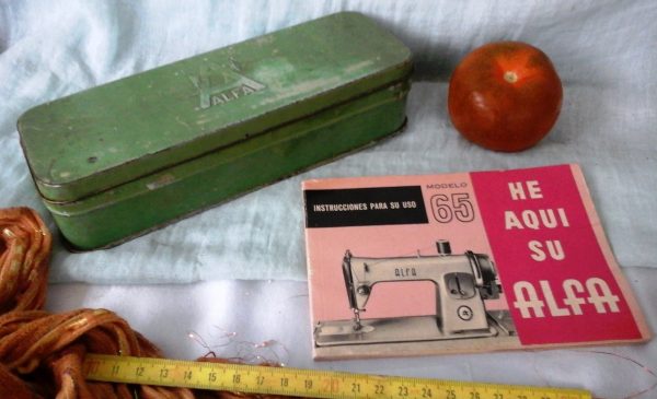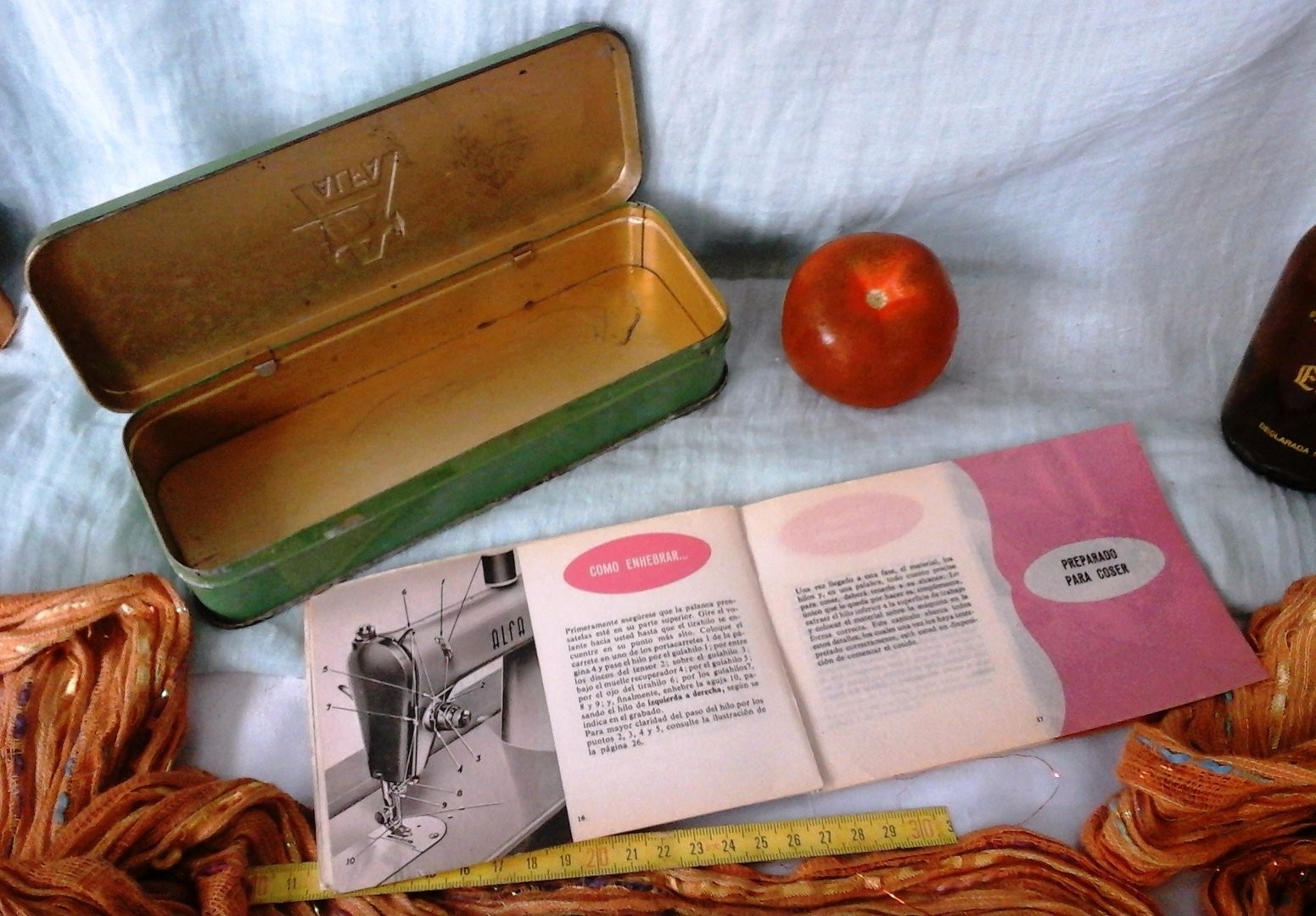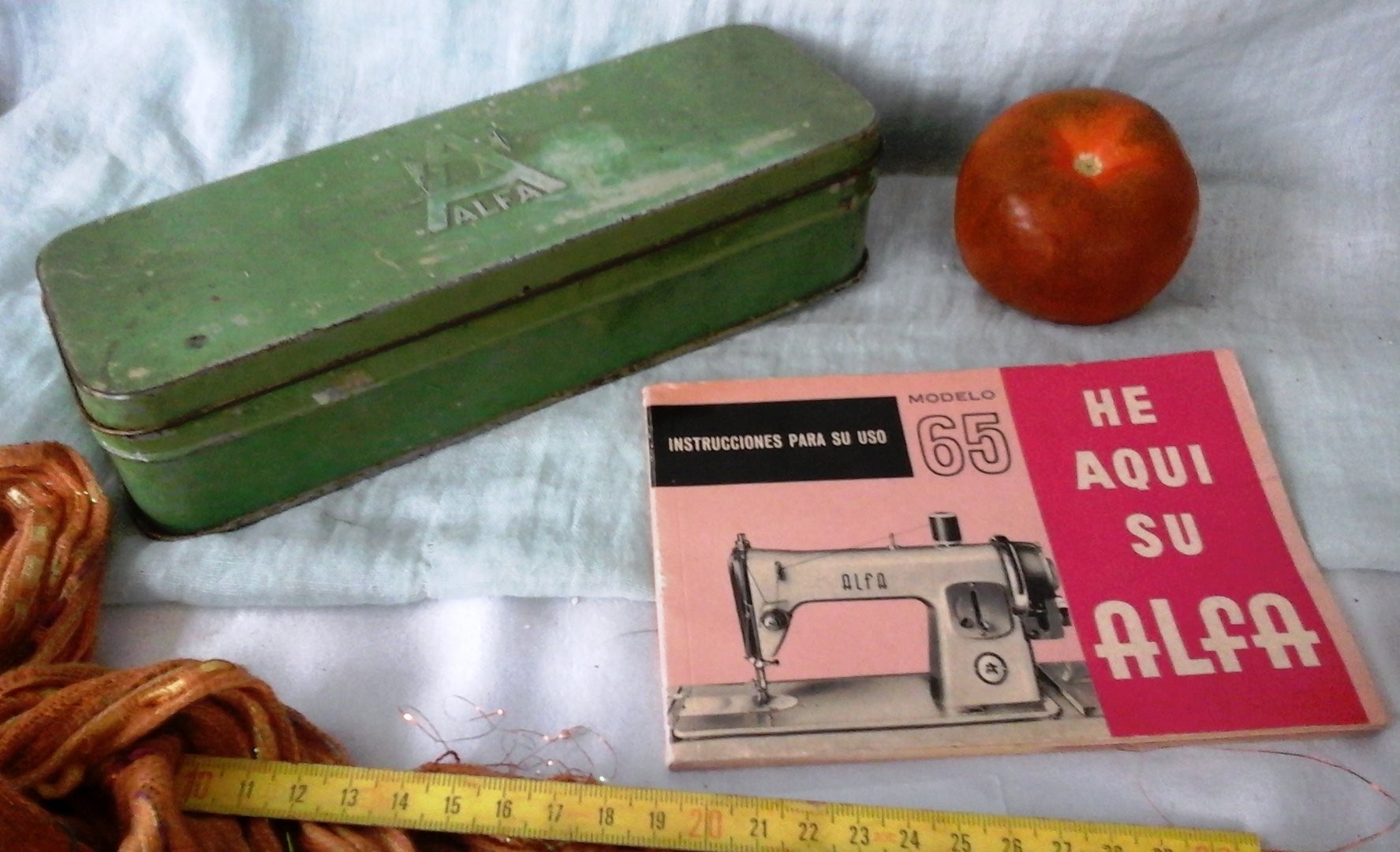 Antiguo manual de máquina coser alfa mod. 65 y preciosa caja metálica
