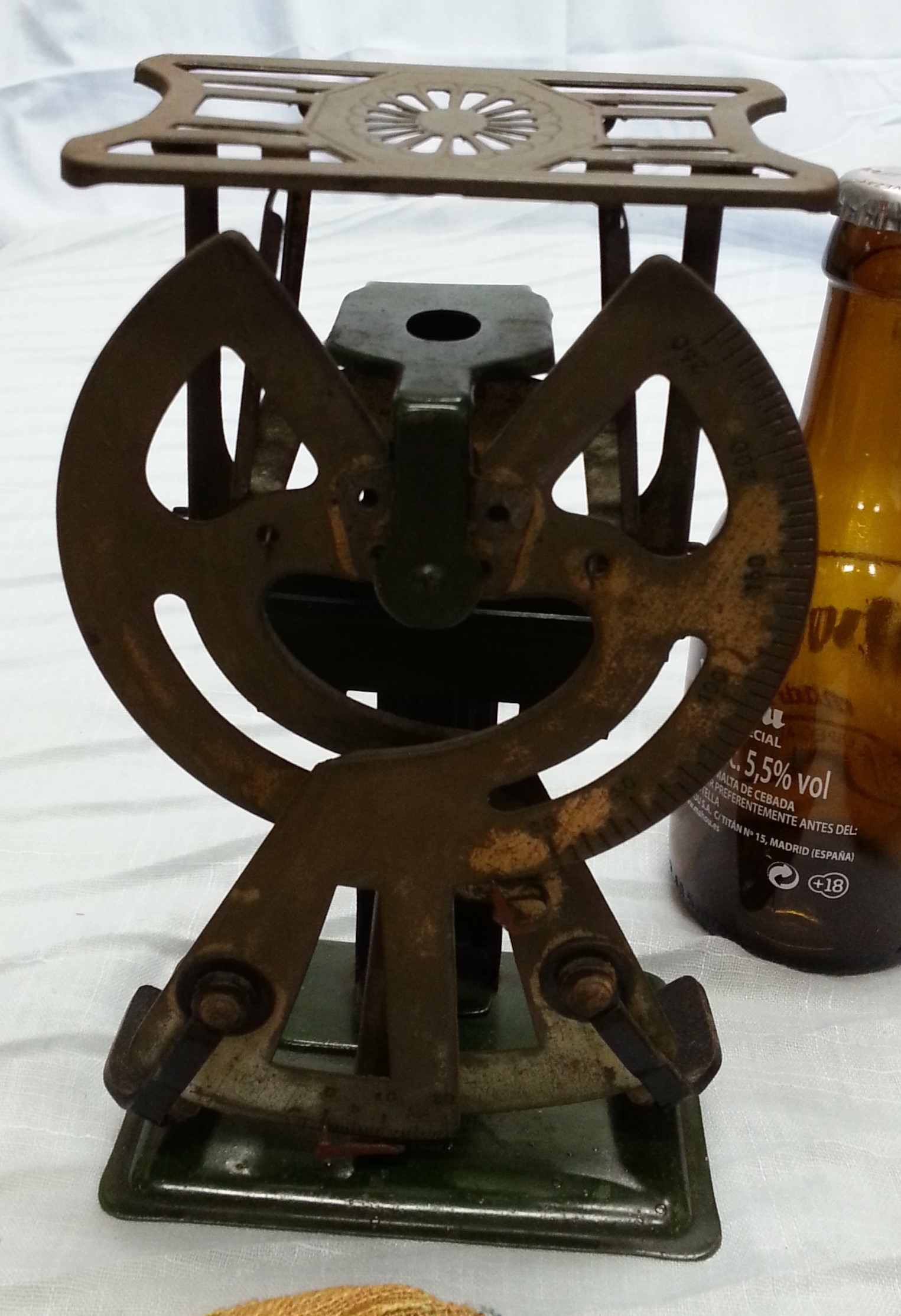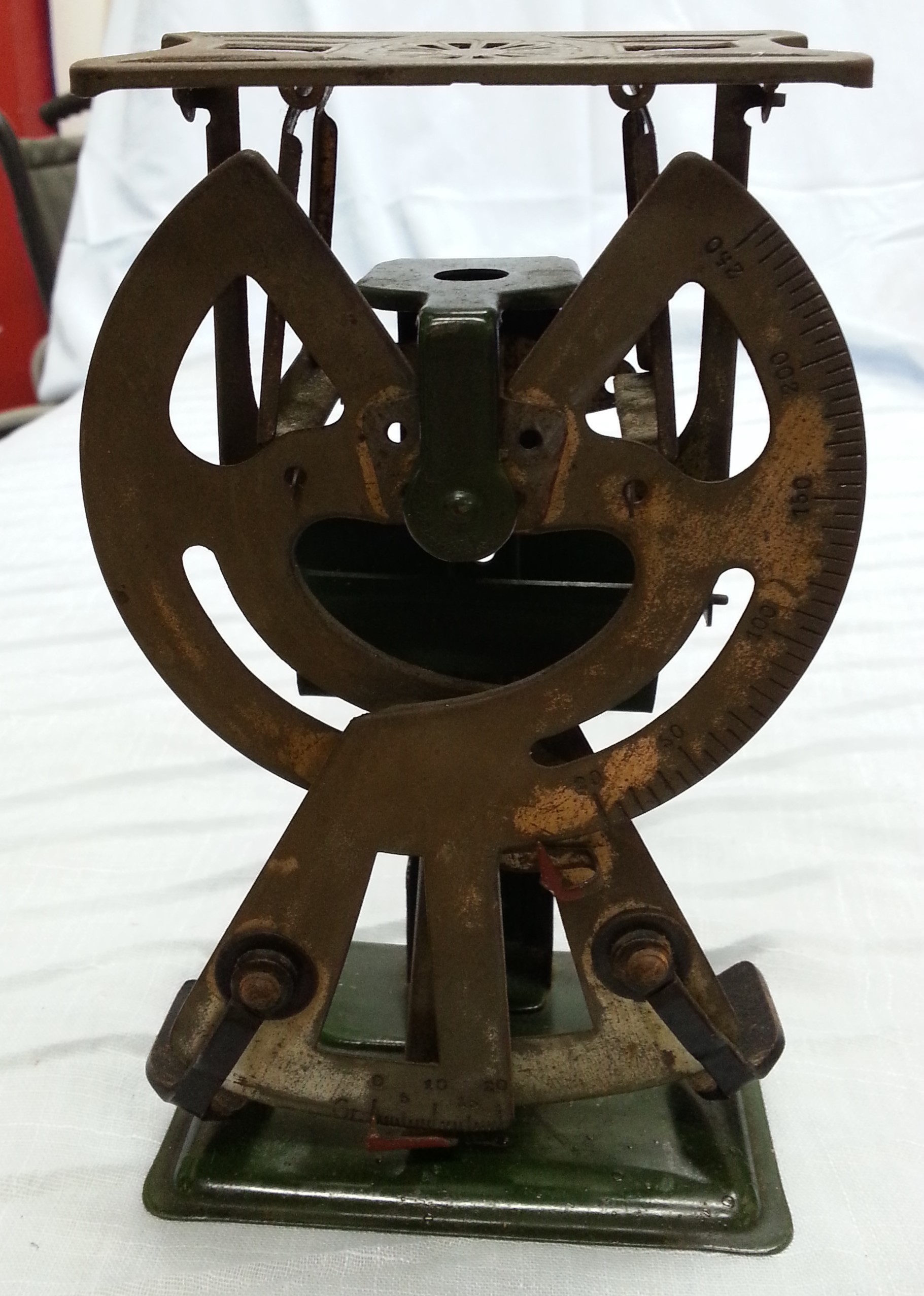 Balanza postal antigua. Se nota el tiempo pasado. Signos de vejez acumulada pero una bonita pieza de colección que sigue funcionando.