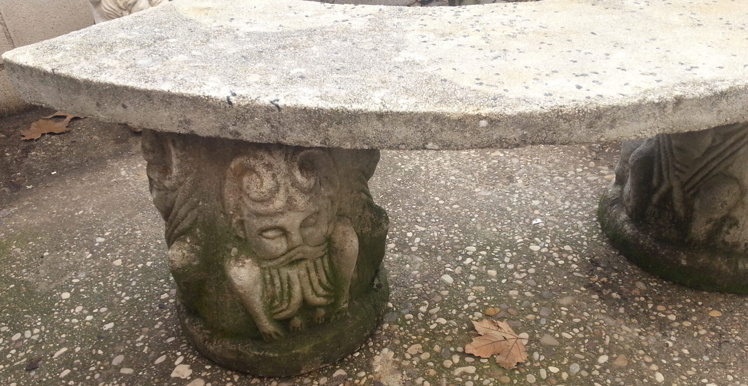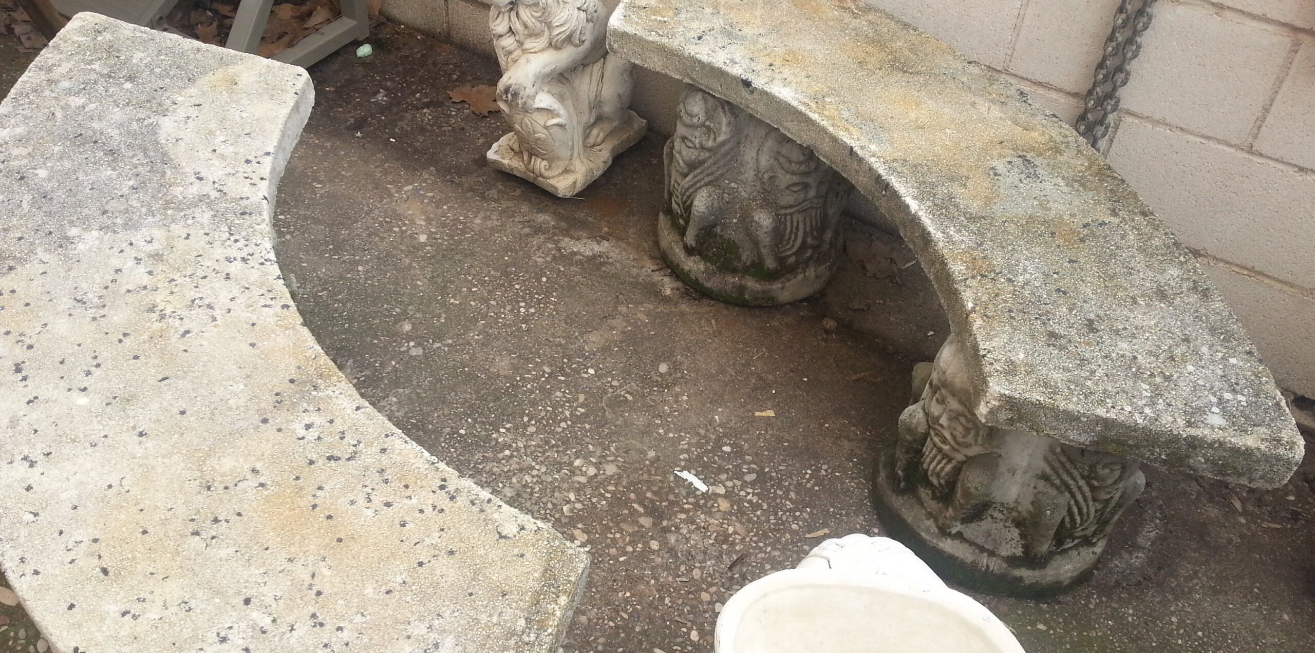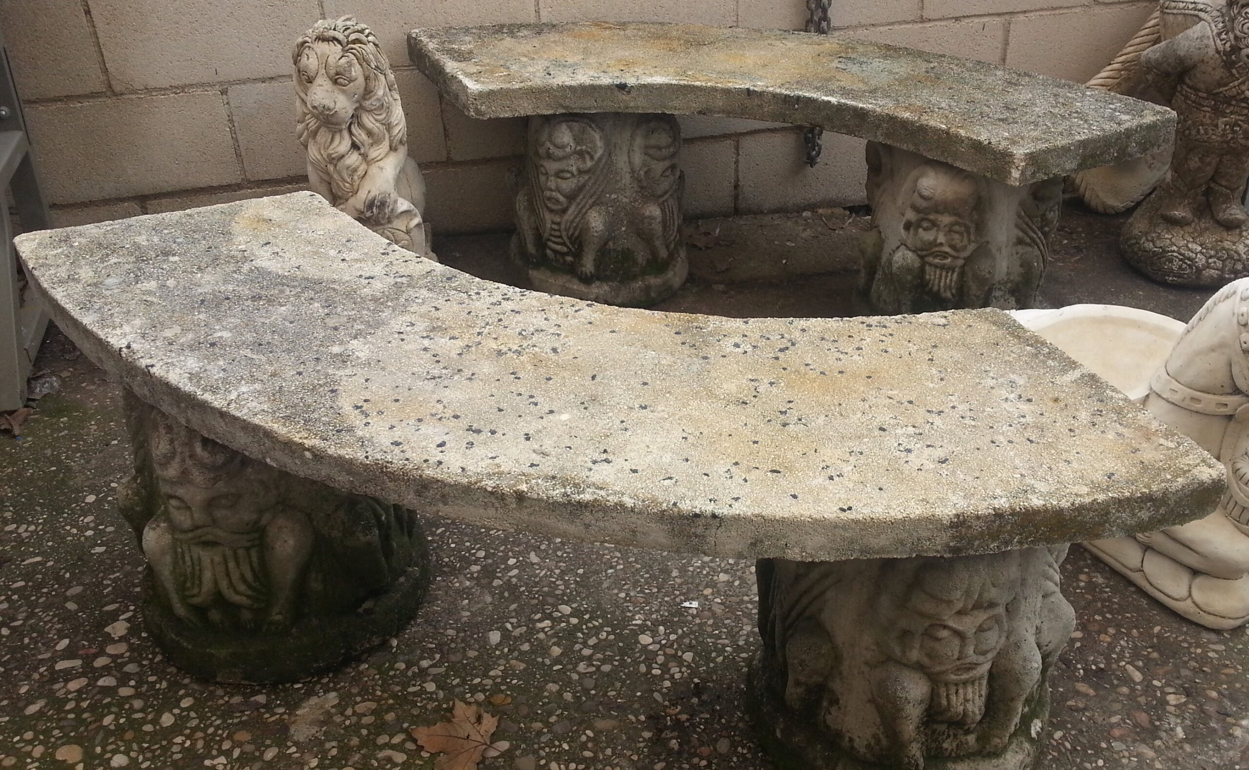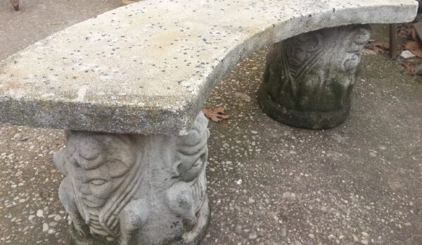 Buen estado general de esta pareja de bancos de piedra fabricados en los años 90. Forma semi-circular.
