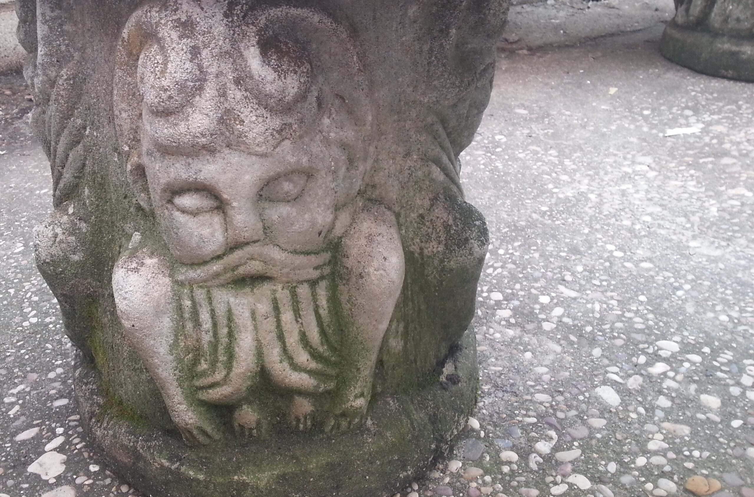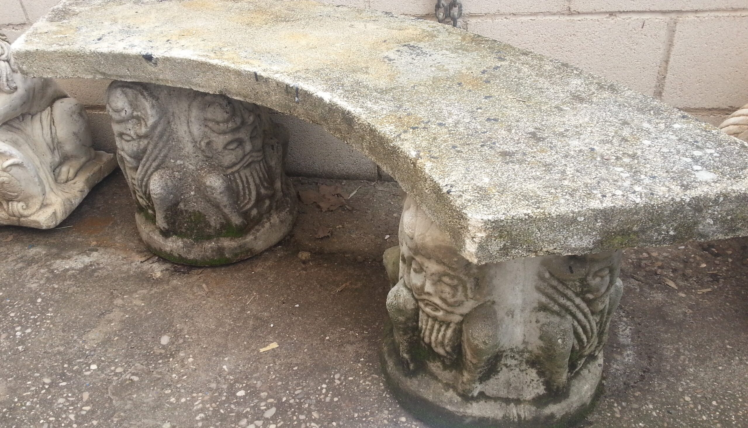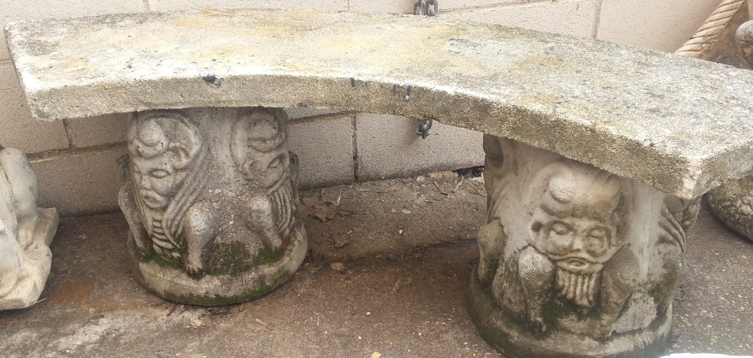 Buen estado general de esta pareja de bancos de piedra fabricados en los años 90. Forma semi-circular.