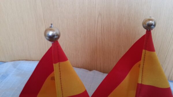 La banderita mide 10,5 cm de alto * 9 cm de ancho y la peana mide 26 cm e alto * 4,5 cm de diámetro.