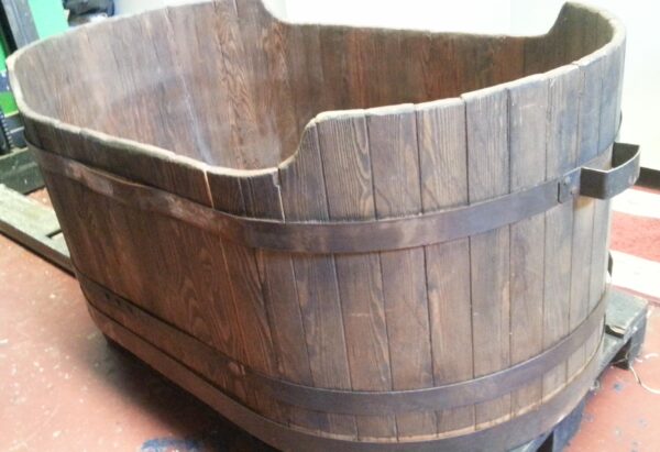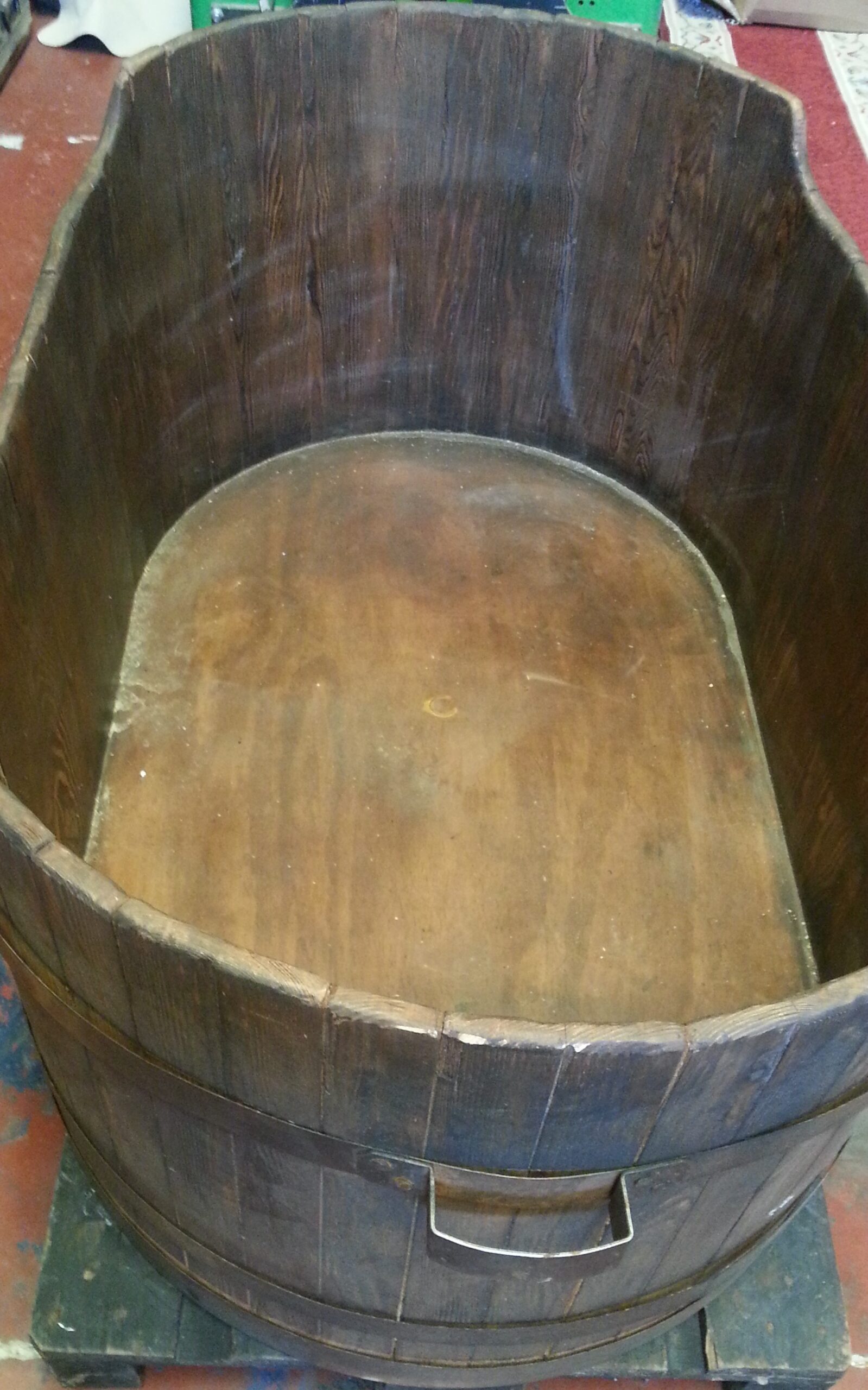 Magnífica bañera fabricada para una película con ambiente medieval. El maestro carpintero especializado en barricas le dio un gran tamaño y una preciosa forma.