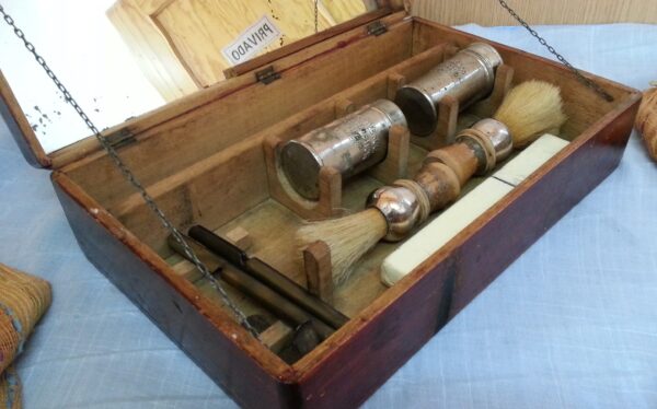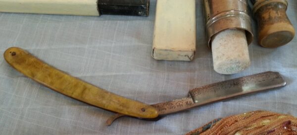 Barbería. Conjunto de utensilios antiguos de barbero.