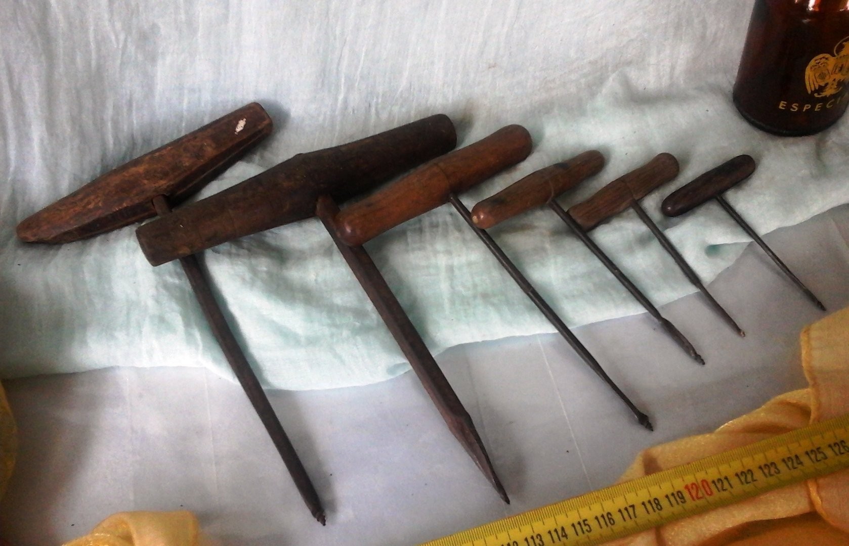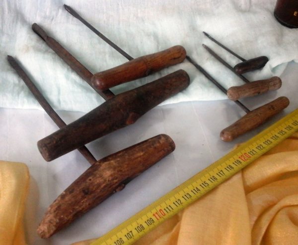 BARRENOS, BARRENILLOS. COLECCIÓN MAGNÍFICA DE 6 UNIDADES ORDENADAS POR TAMAÑO: Estos antiguos barrenos eran utilizados por maestro carpinteros y en algunas otras profesiones… PRECIOSA COLECCIÓN DE 6 HERRAMIENTAS. El más largo mide 23 cm y el más corto 9 cm. Ref. Tall. Barrenos nº 207-B