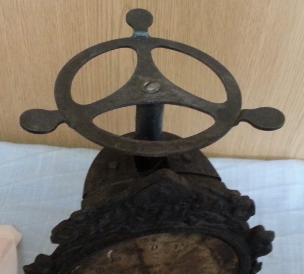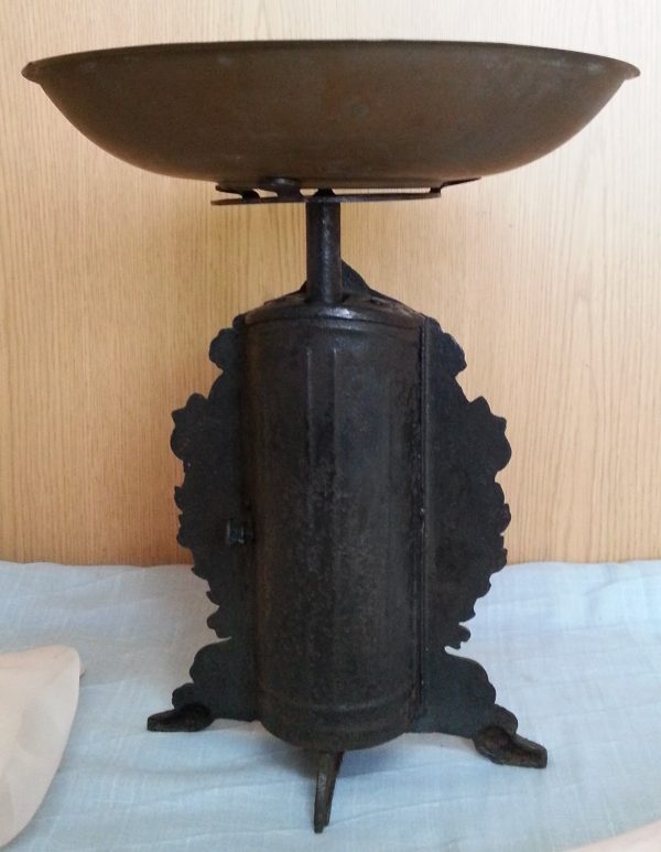 Preciosa y emblemática báscula de cocina fabricada en hierro de fundición con platillo en cobre.