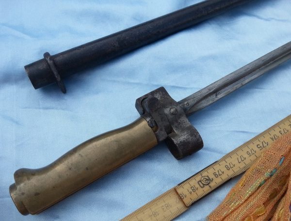 Buen estado de conservación de esta bayoneta. Tal cual se puede ver en las fotos. Empuñadura de bronce. Tipo bayoneta level.
