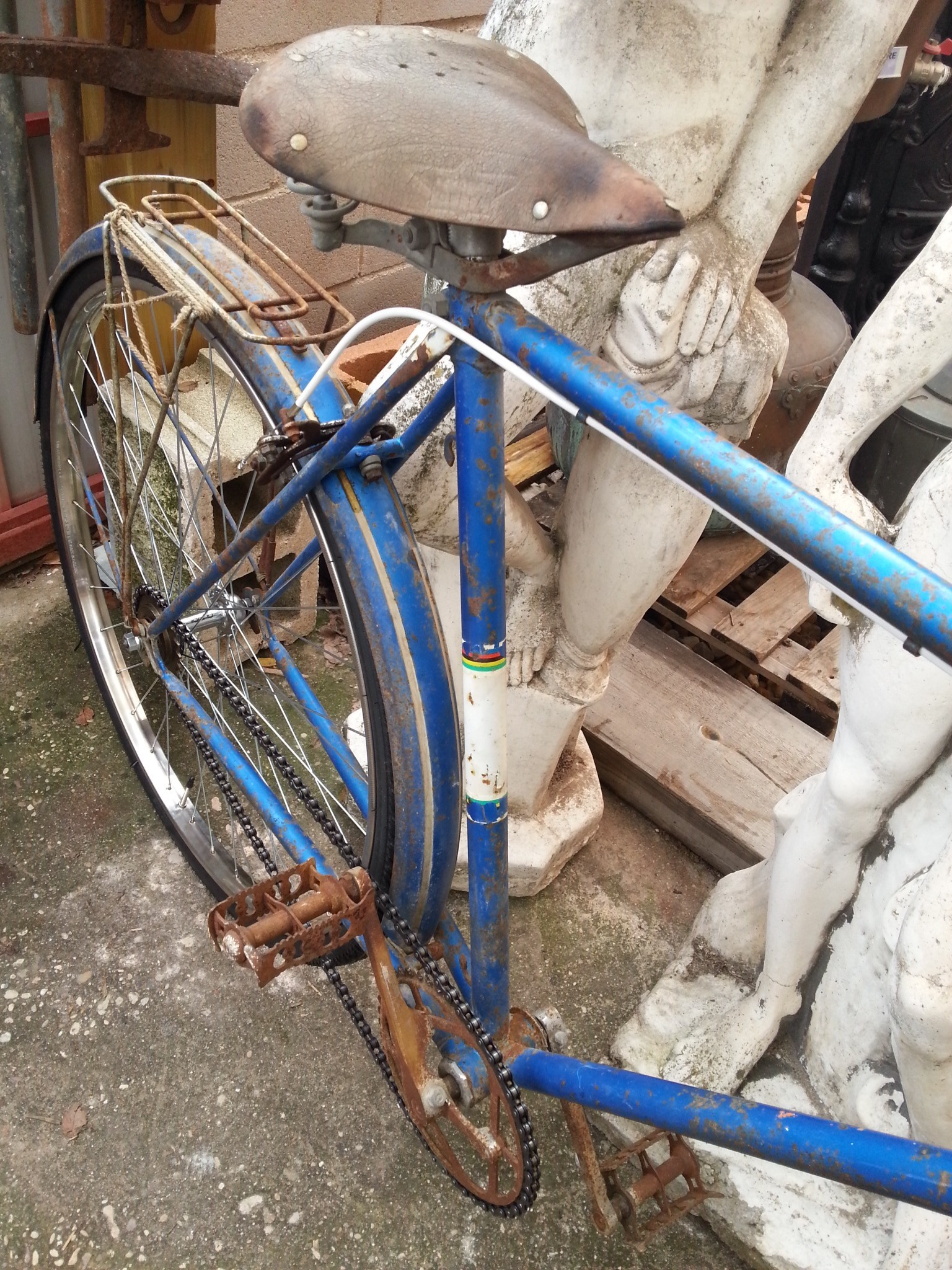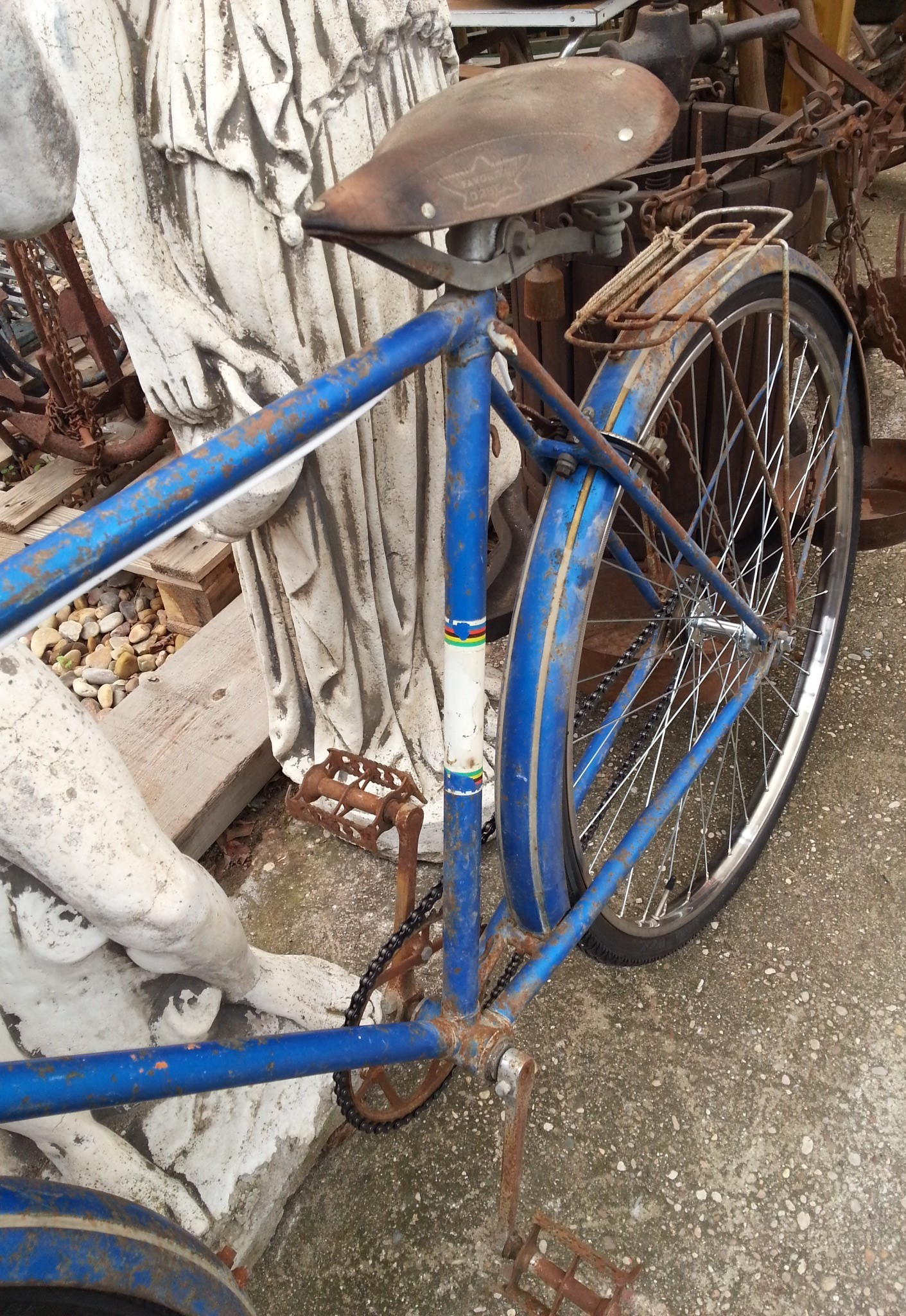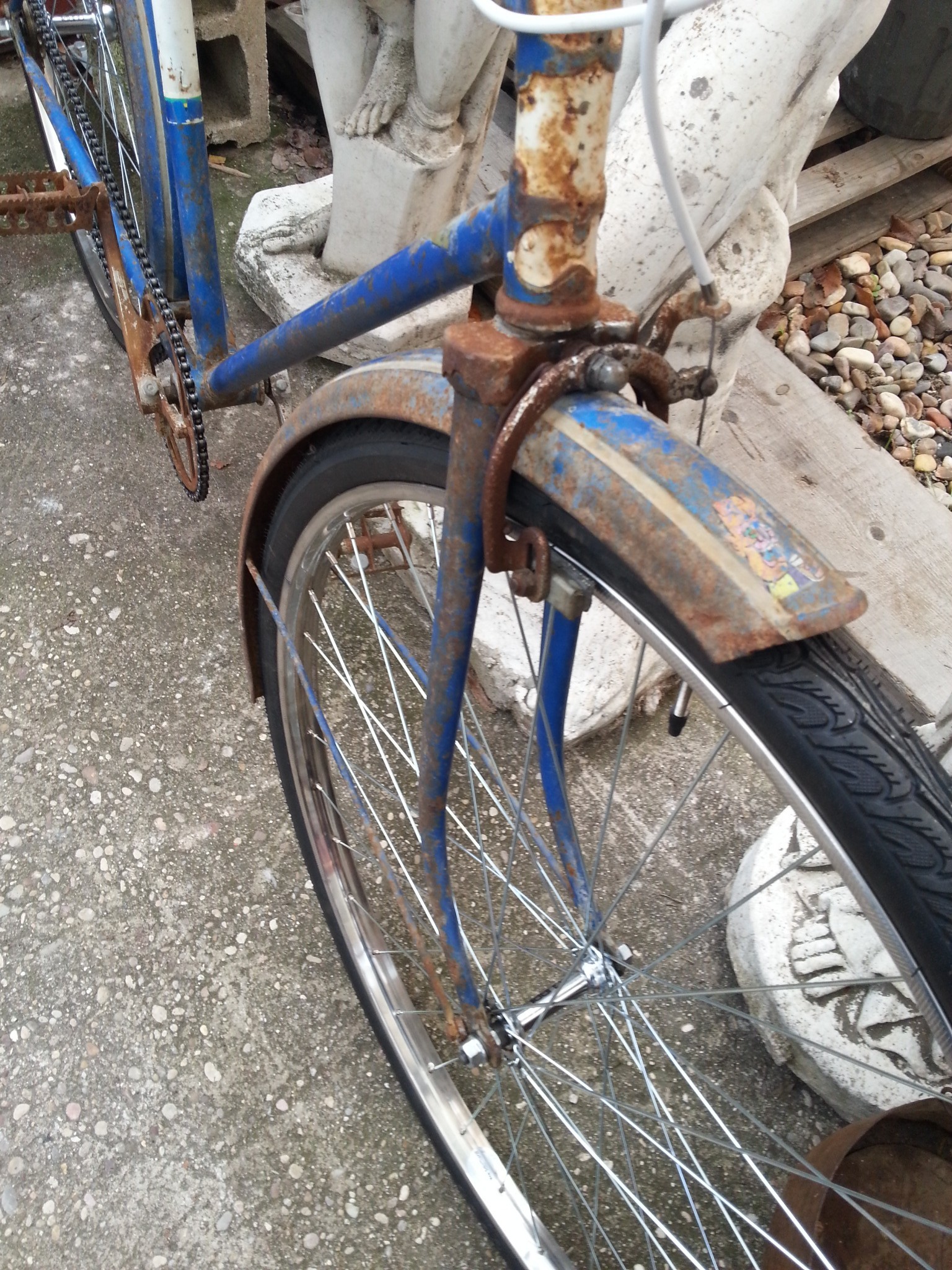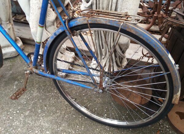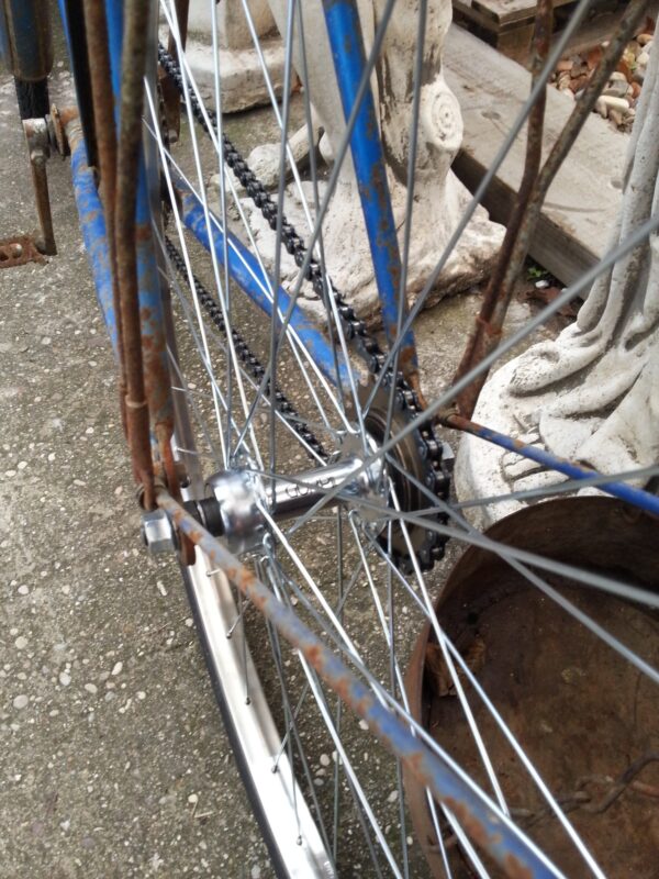 Se ha respetado todo su estructura con sabor a vejez acumulada pero se le ha puesto ruedas de radios completamente nuevas con llanta, nuevo cámaras y cubiertas. Además se ha puesto cadena nueva.