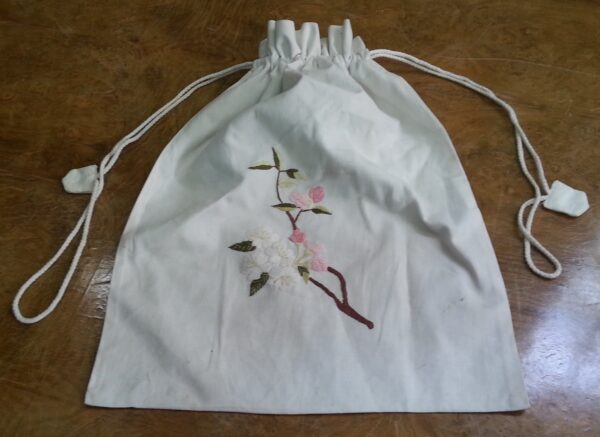 Bolsa panera en color blanco con flores bordadas.