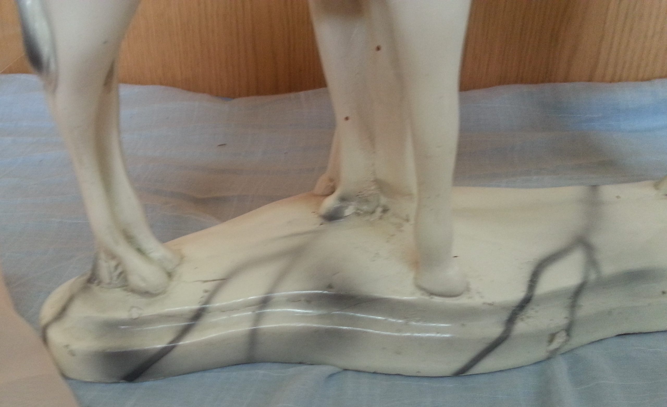 Preciosa escultura en cerámica representando a una yegua amamantando a su cría.