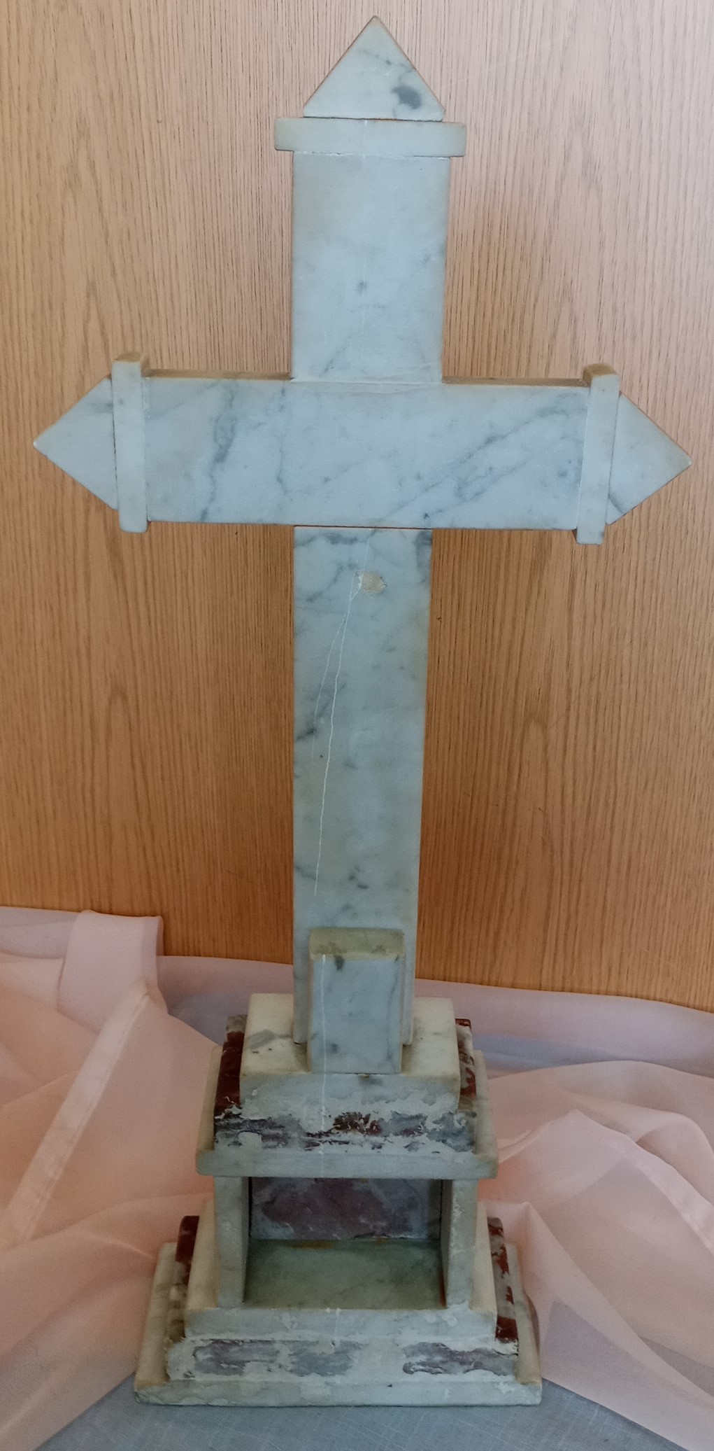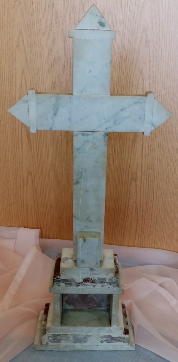El calvario fabricado en mármol mide 50 cm de alto *16 cm de ancho.