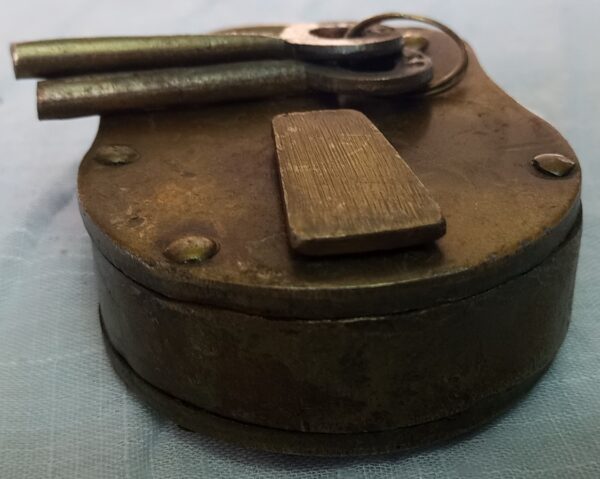 Candado replica de los candados de los años 40. Funciona. Servirá para reutilizar, como objeto de decoración o colección.