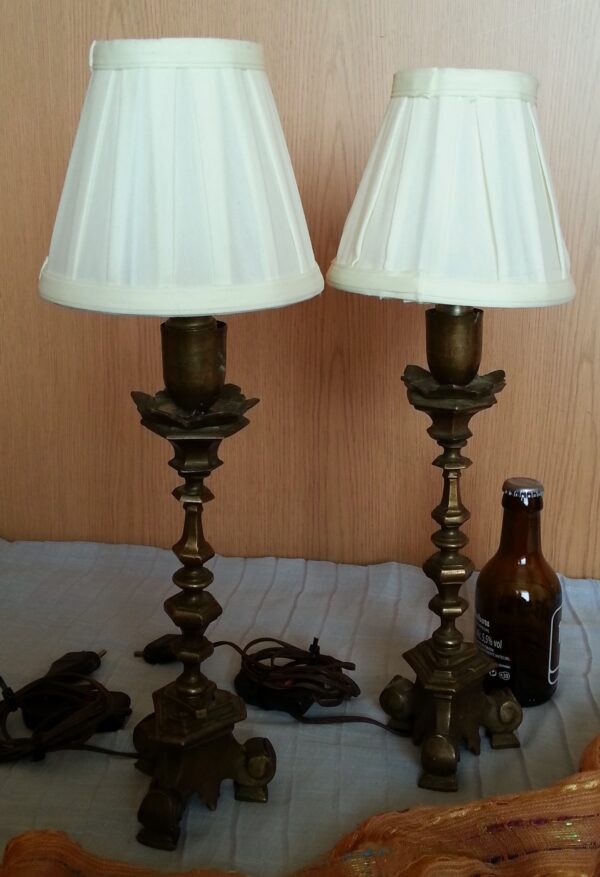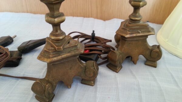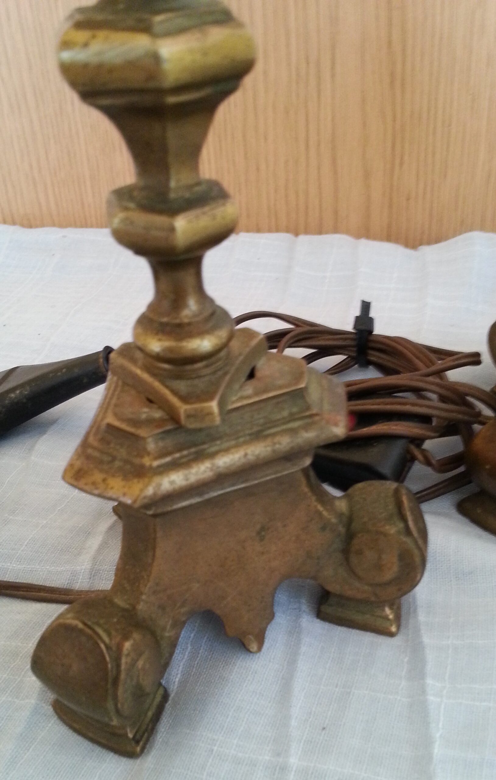 Candelabros antiguos en bronce. Electrificados. Pareja. Años 1920-1950.