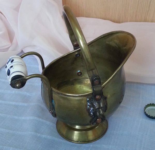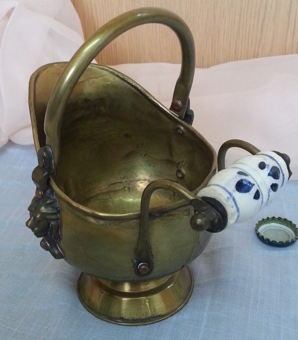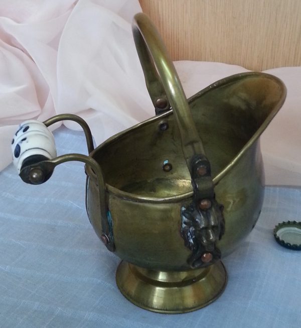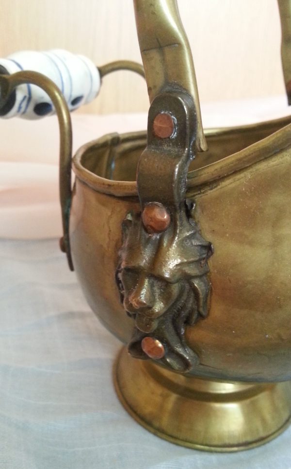 Magnifico objeto de decoración con bonitos detalles, como por ejemplo, sus remates de cabeza de león y su asidera policromada.