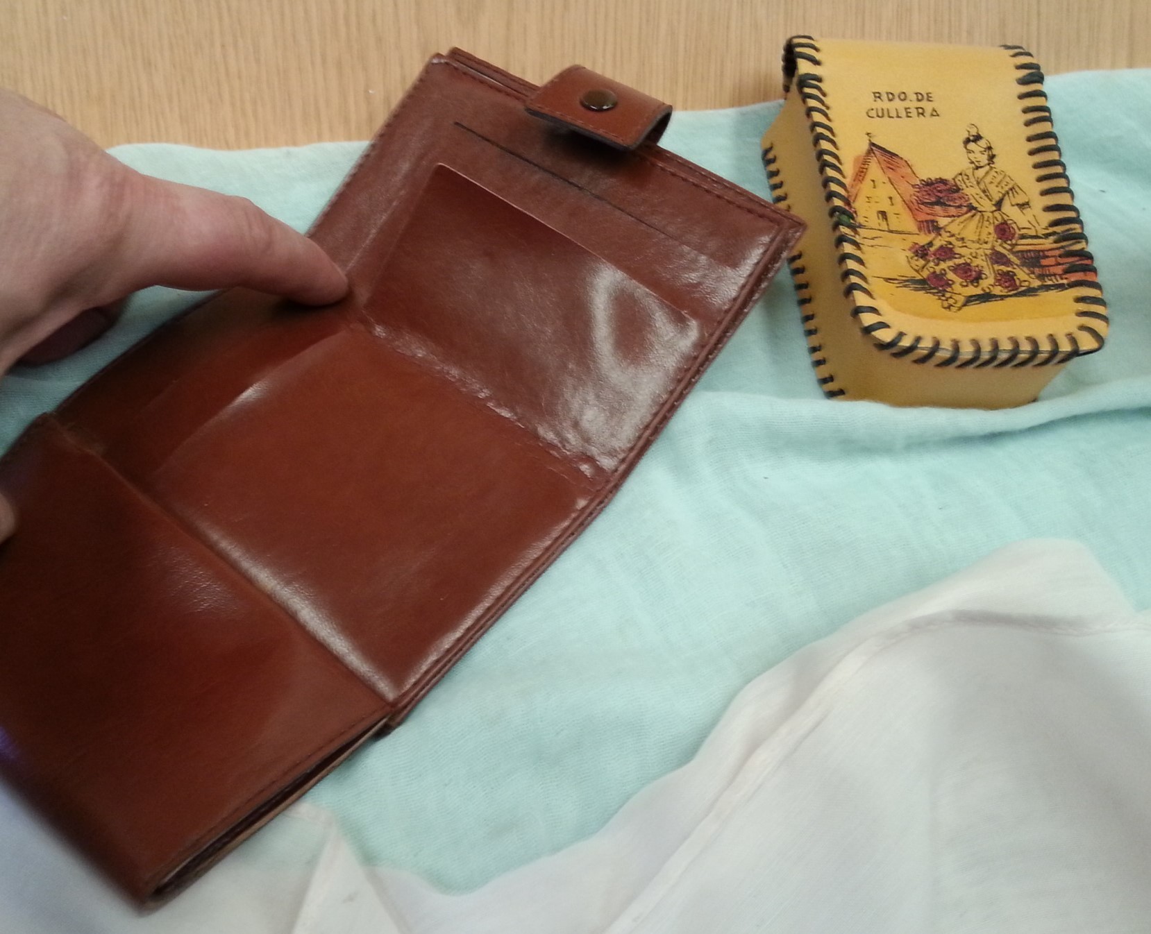 Cartera de bolsillo y estuche en poli-piel. Años 90. Nuevos a estrenar.