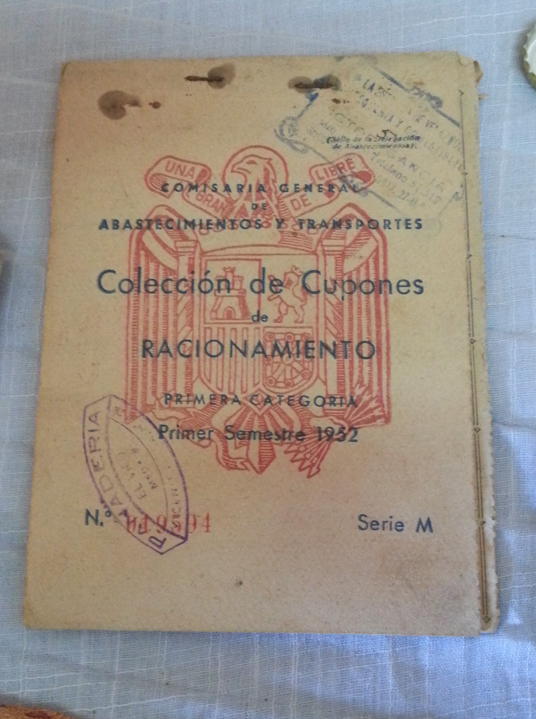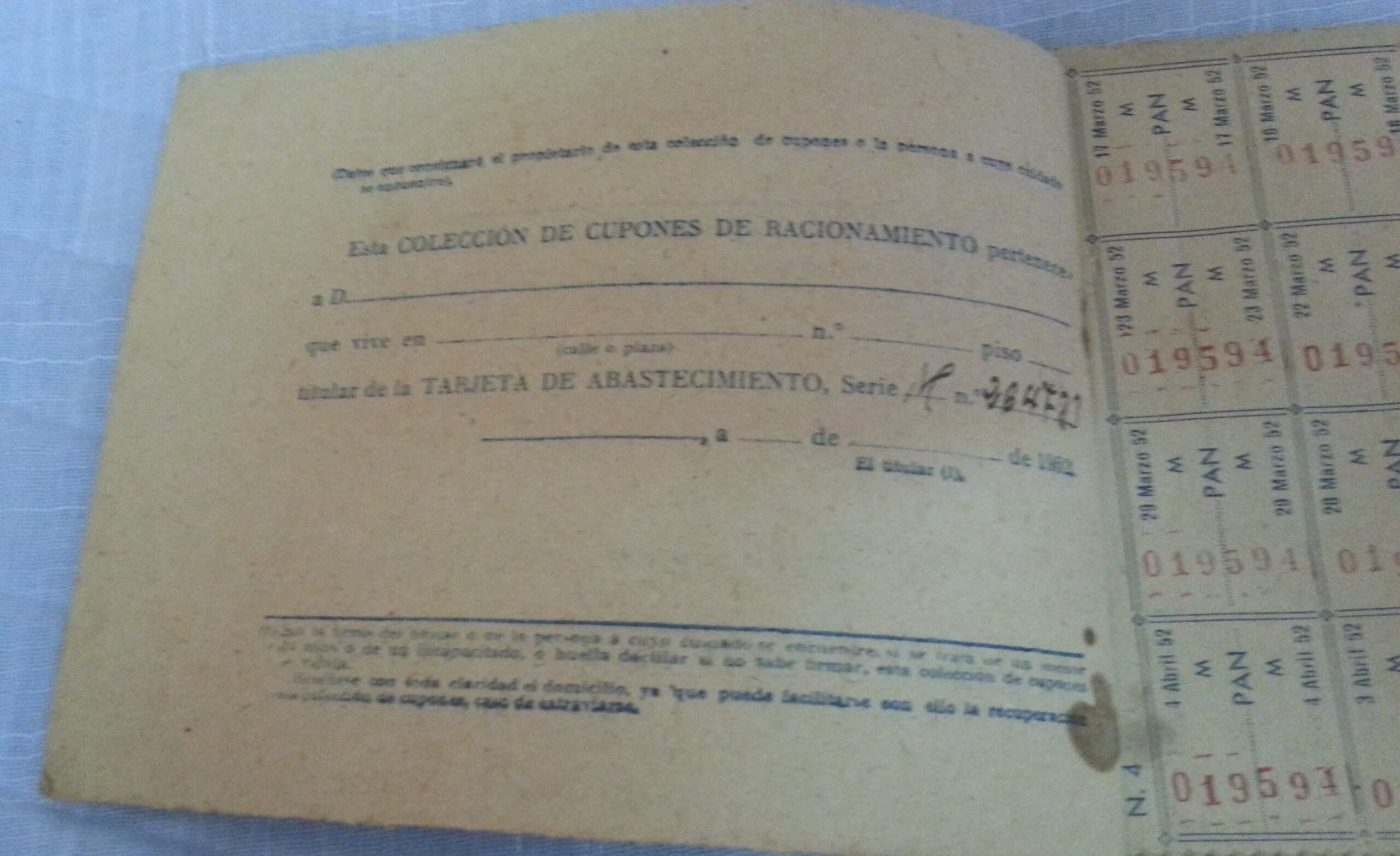 Emblemática Cartilla de Racionamiento del año 52. Primera categoría… panadería, aceite, azúcar, arroz, …