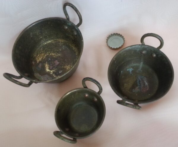 Cazos de cobre. Pequeñitos, para aperitivos. Tres unidades