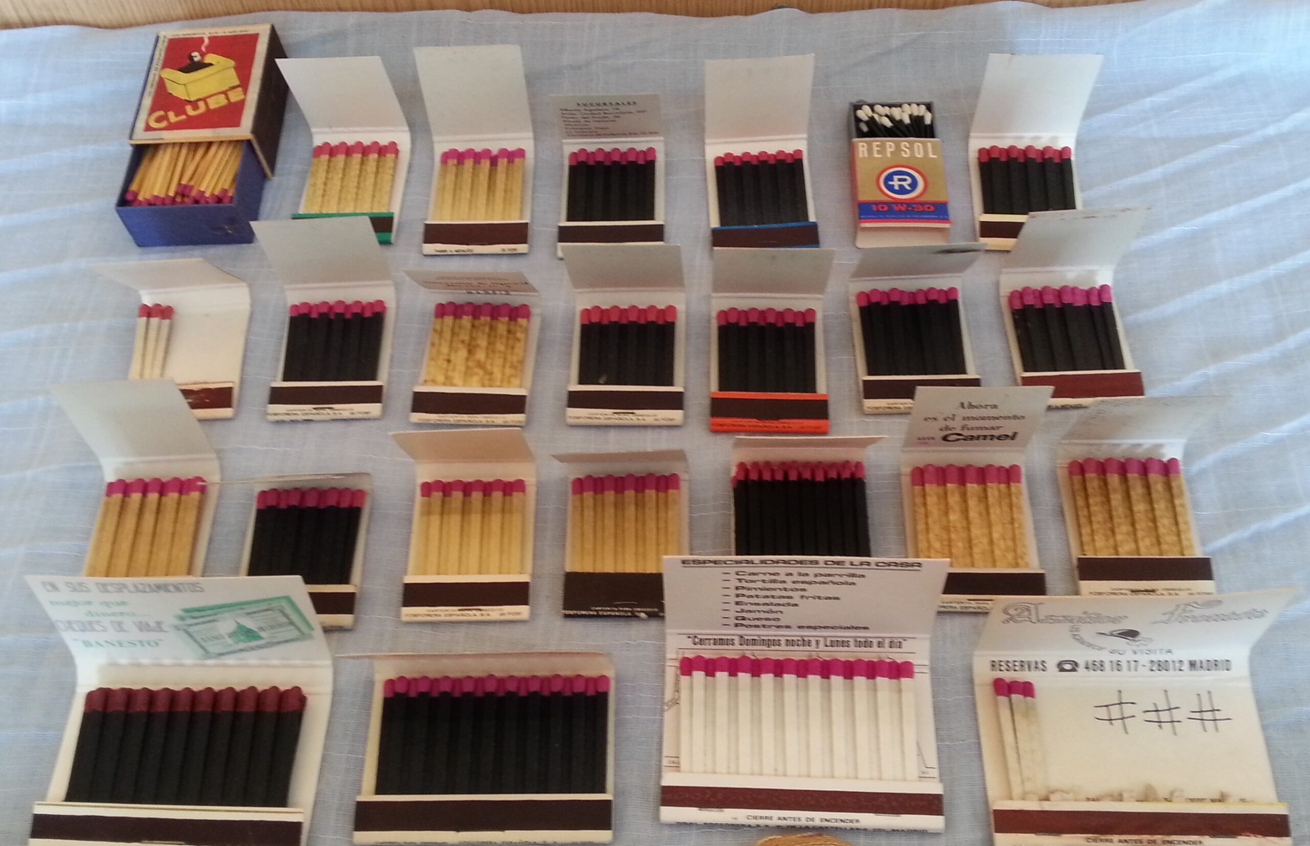Colección de 24 cajas de cerillas recogidas por toda España durante muchos años.