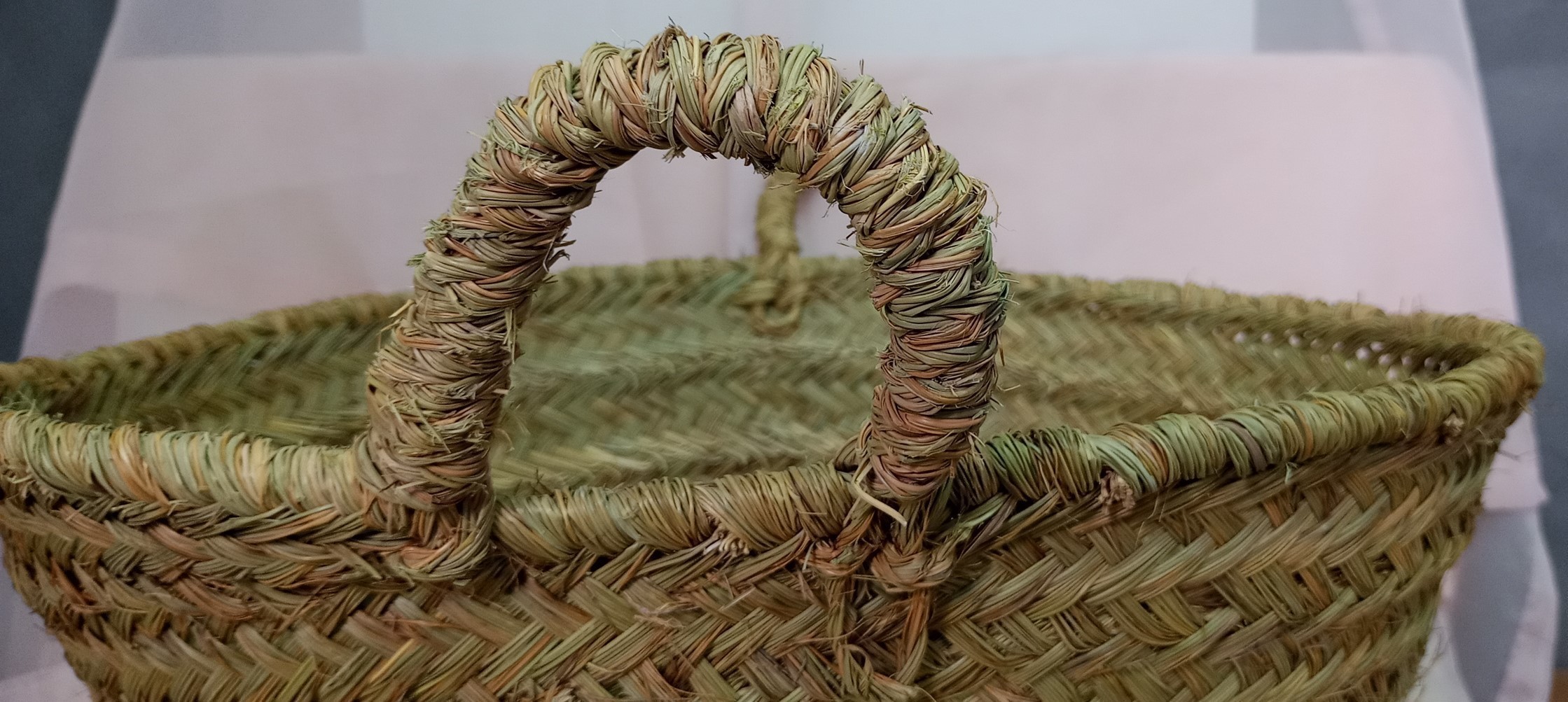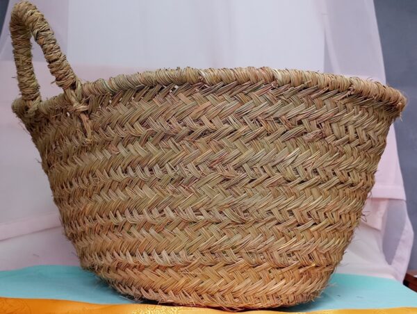 Preciosa cesta de esparto para utilizar como leñero o decoración rústica.