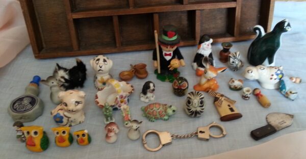 Preciosas piezas coleccionables fabricadas en diferentes materiales. Todas las piezas están en buen estado y se incluye su expositor de madera con forma de casita.