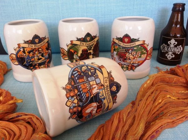 COLECCIÓN DE CUATRO JARRAS DE CERVEZA. ORIGEN ALEMÁN: Las 4 se encuentran en perfecto estado. Cerámicas. Miden todas ellas 12 cm de alta * 14 cm de ancho hasta su asa. Ref. Jarras nº 114
