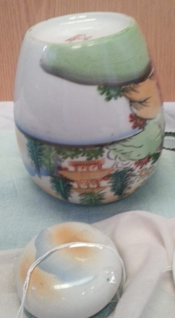 Preciosa pareja de jarrón y joyero para decoración en tocador. Buena calidad. Porcelana china.