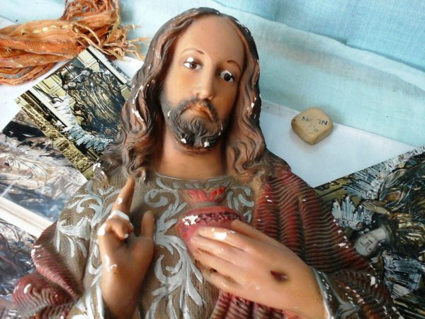 Cristo viejo en escayola. Abandonado hace mucho tiempo. . .