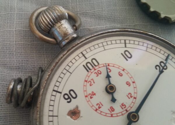 Bonito antiguo cronómetro. No funciona, le falta su esfera de cristal y desconocemos que le ocurre por lo que lo ofrecemos como articulo de coleccionismo, decoración o repuestos.