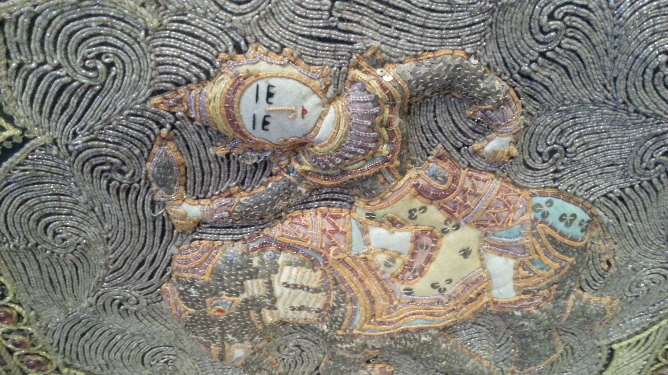 Cuadro bordado de origen Indio. Maravillosa artesanía de los años 70
