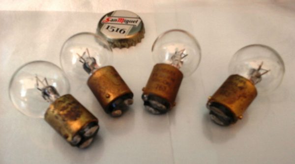 CUATRO VIEJÍSIMAS BOMBILLAS DE 6 V. MARCA WAGNER (6 V – 18/4 W) ARGON 763: Tal cual se pueden ver en las fotos. Encontradas en un taller mecánico que hacía más de 50 años que cerró sus puertas. Ref. nº 2134