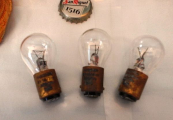 CUATRO VIEJÍSIMAS BOMBILLAS DE 6 V. MARCA WAGNER (6 V – 18/4 W) ARGON 965: Tal cual se pueden ver en las fotos. Encontradas en un taller mecánico que hacía más de 50 años que cerró sus puertas. Ref. nº 2137