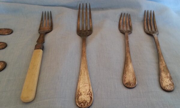 Cubertería Antigua. Posiblemente alpaca. 14 Piezas.