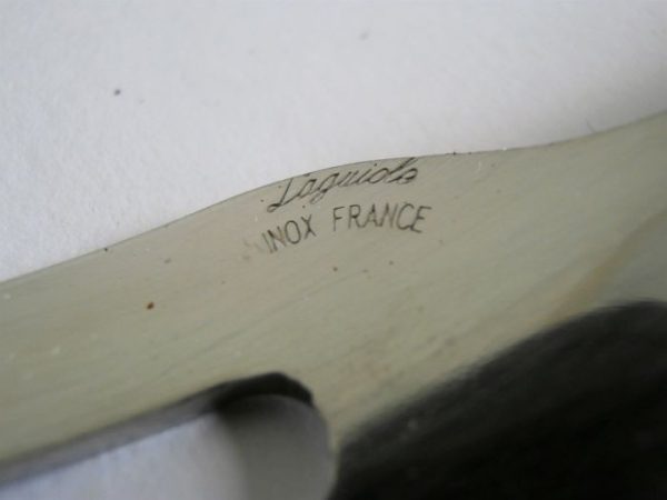 Cuchillo largo 21,8 cm / marcado Laguiole Z40C13 TREMPE Longitud trinchador 22 cm / marcado Laguiole inox Francia Dimensión caja 28,5 cm x 10,5 cm.