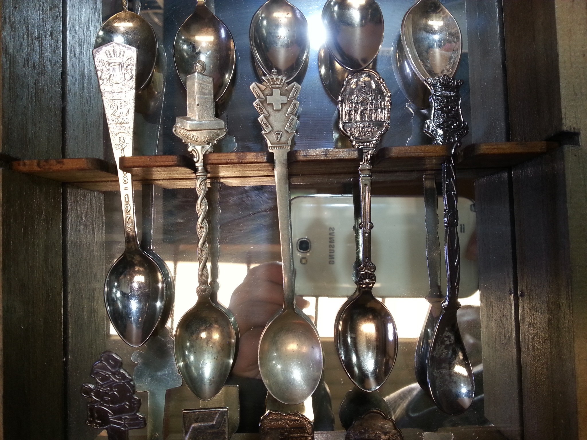 Cucharillas de té. Colección de 25 unidades. Con su expositor de madera. Tea spoons.