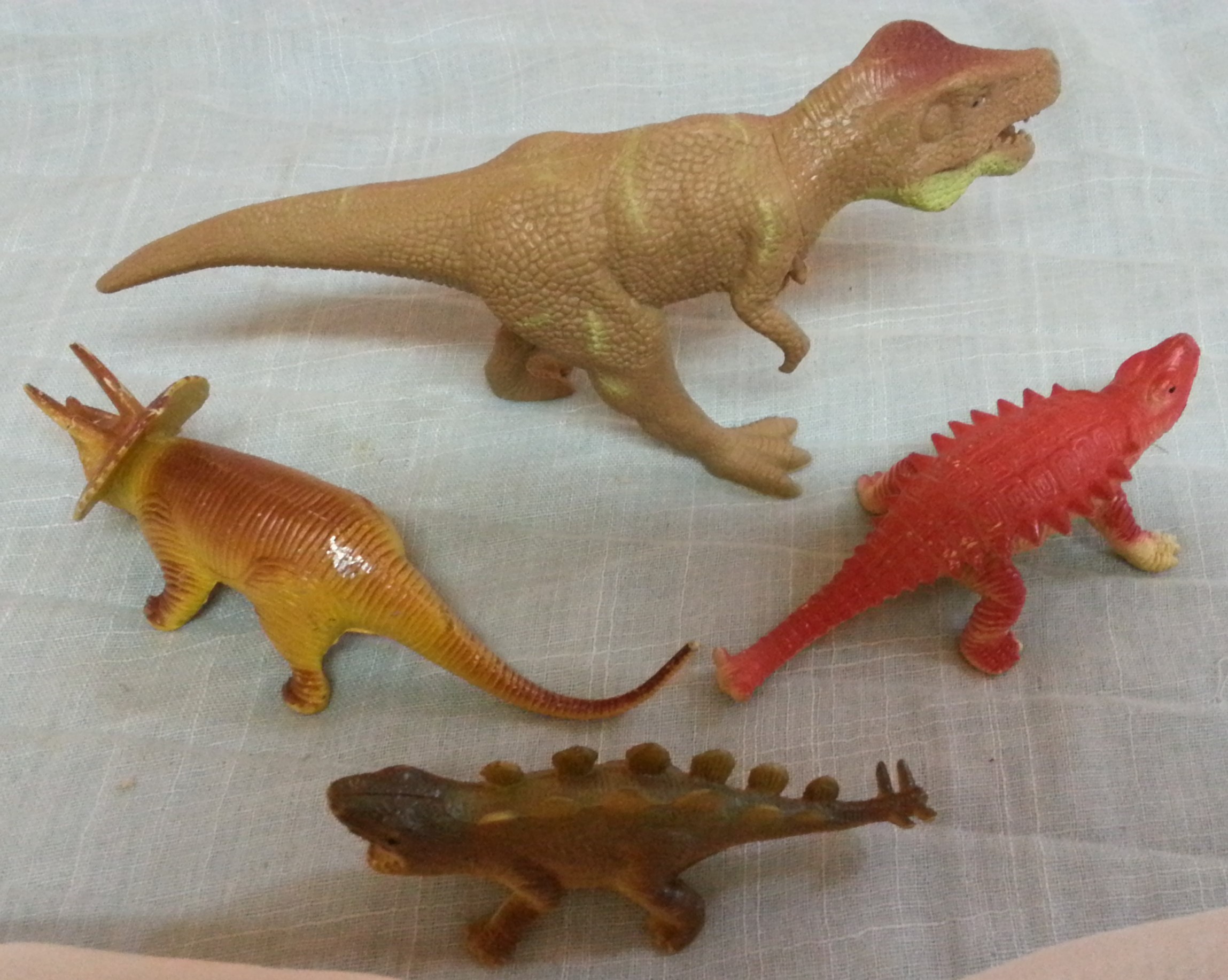 Dinosaurios de juguete. Fabricados en plástico y goma.