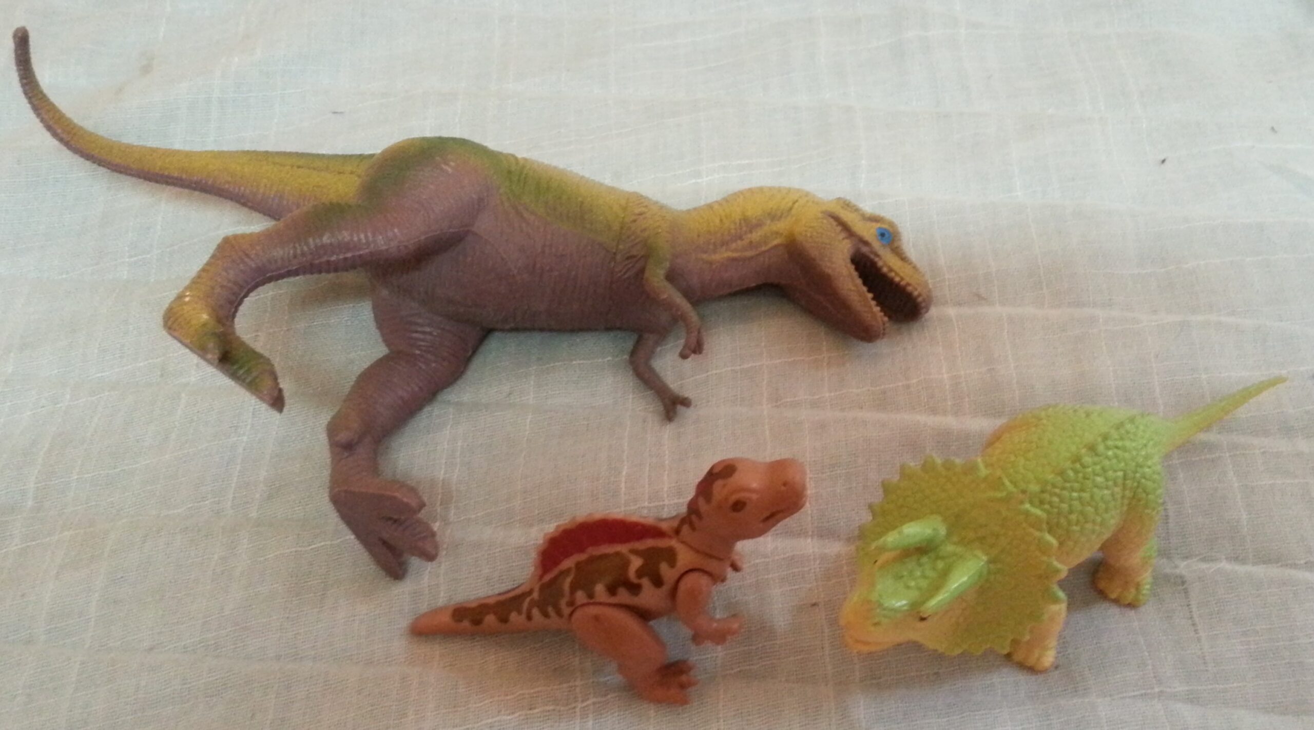 Dinosaurios de juguete. Fabricados en plástico y goma.