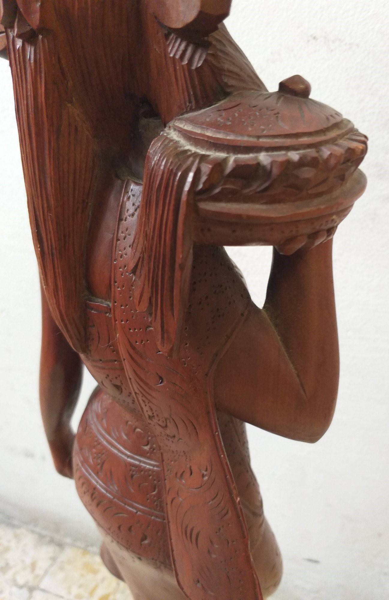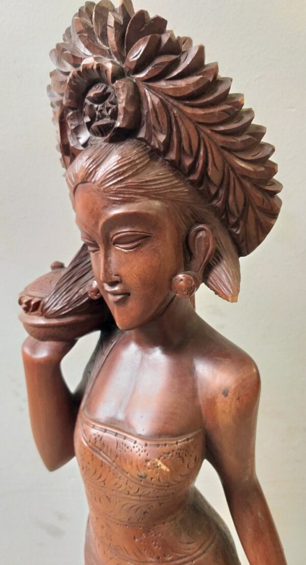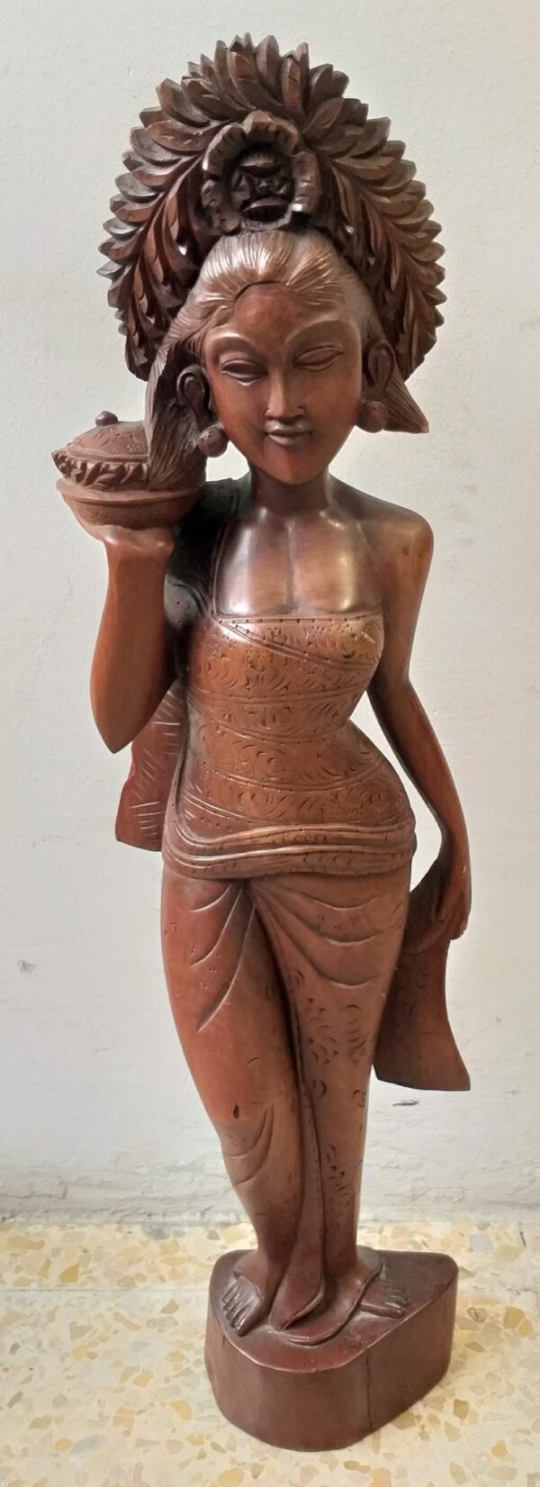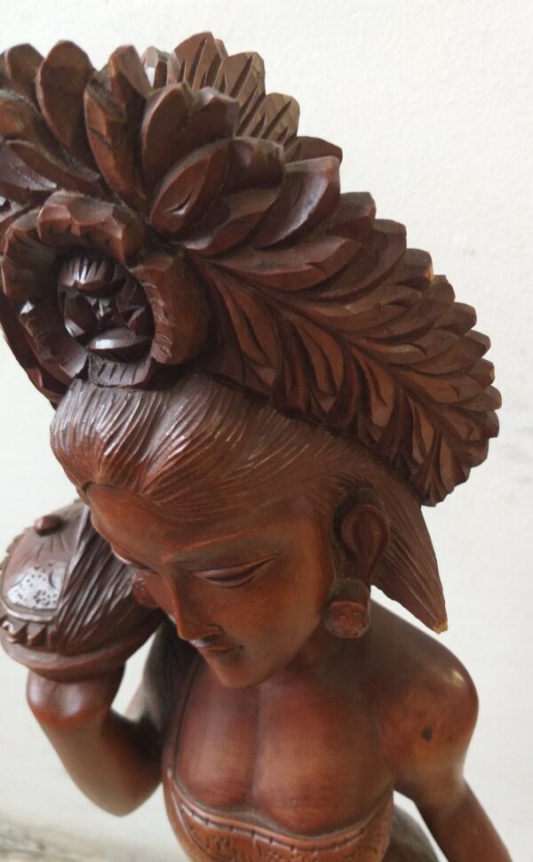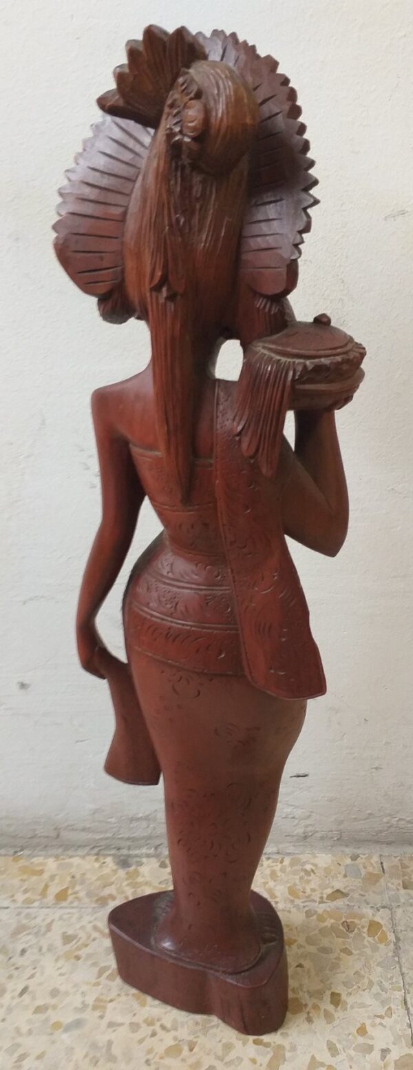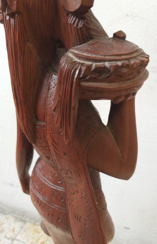 Escultura en madera. Mujer joven asiática. 60 cm altura. Tallada en noble caoba.