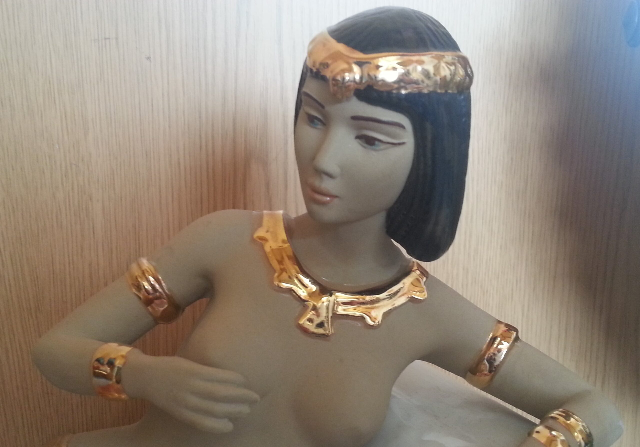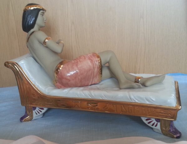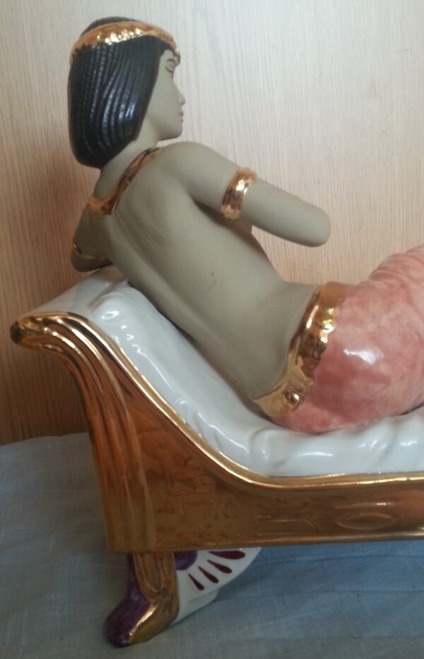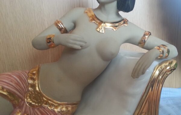 Escultura. Figura mujer egipcia en porcelana. Gran tamaño.