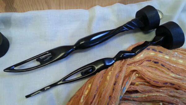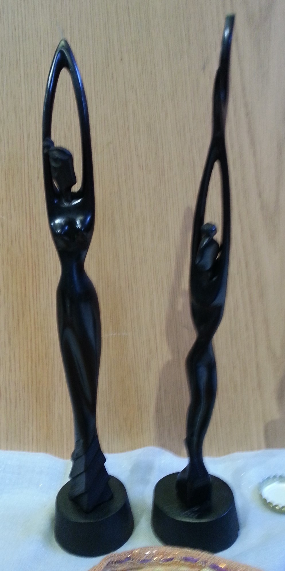 Esculturas origen cubano en madera de ébano. Pareja. Años 80