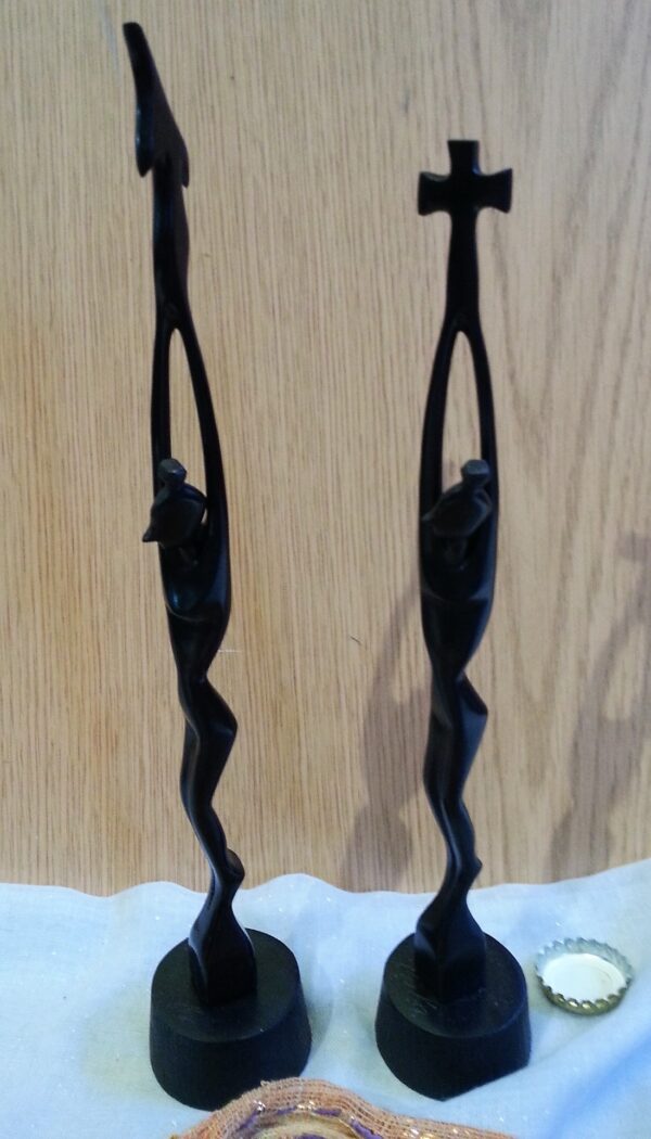 Esculturas origen cubano en madera de ébano. Pareja. Años 80