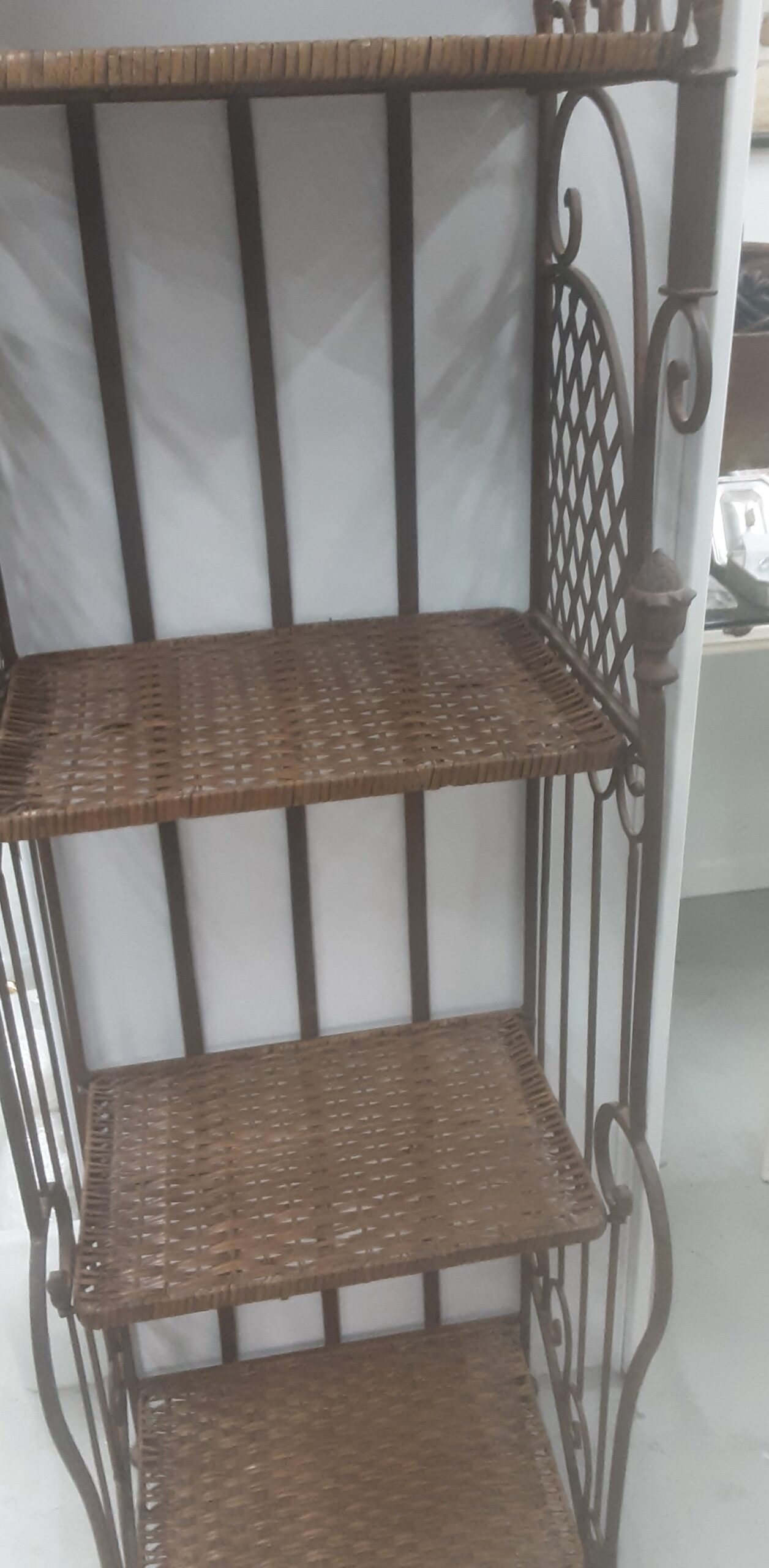 Estantería en hierro y mimbre con 4 estantes y preciosa forma.