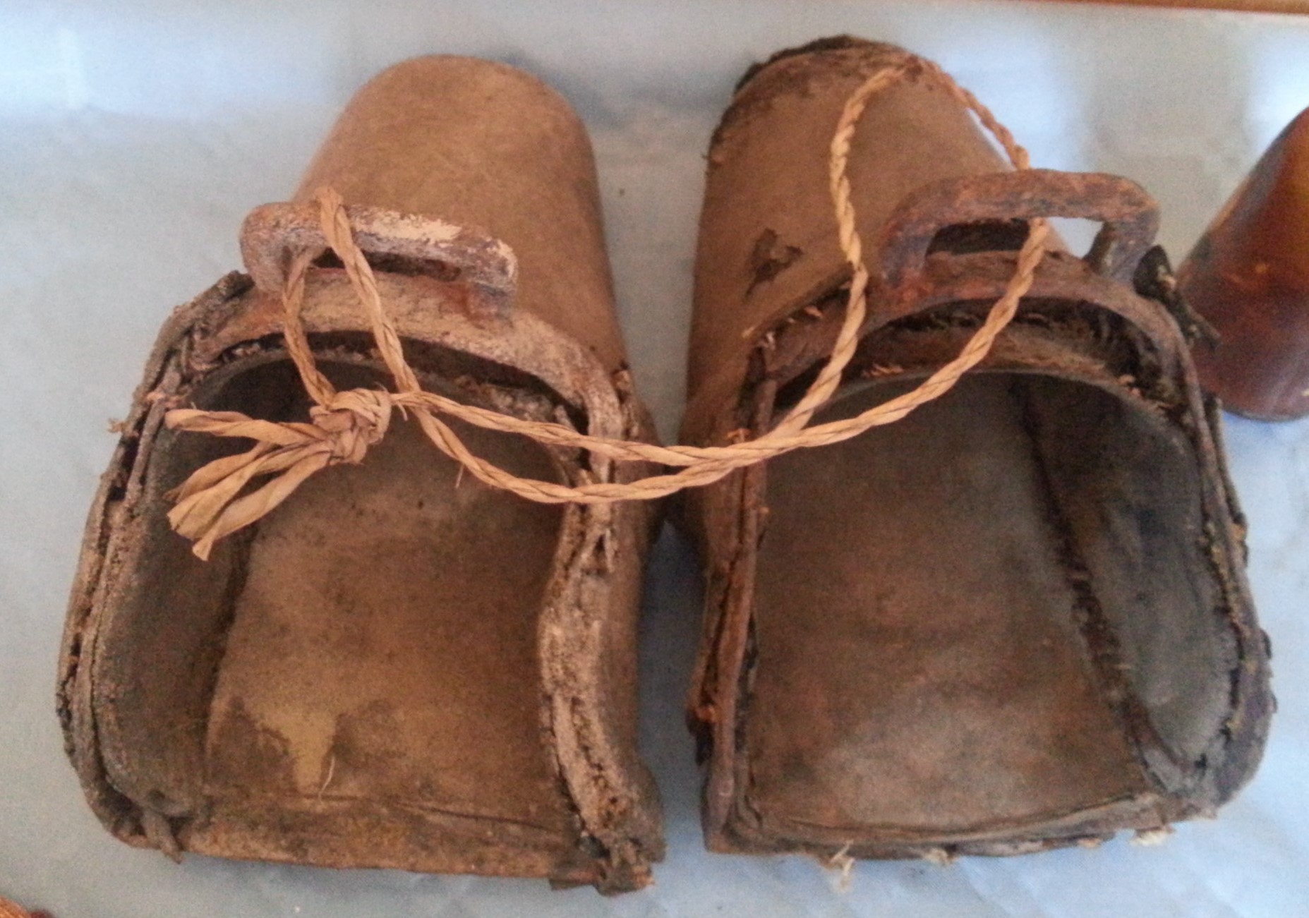 Estribos de caballería. Viejísimos. Pareja. Hierro y cuero.