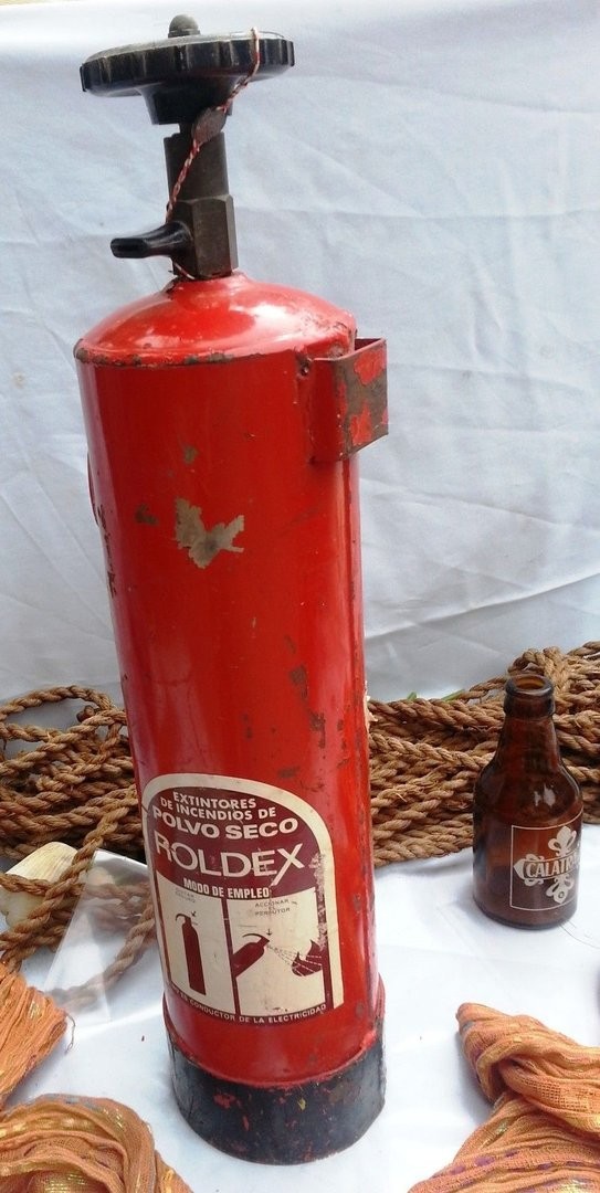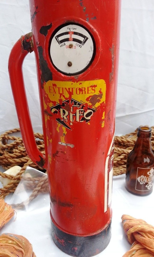 Se trata de un viejo extintor de ese año con curiosa forma con respecto a los modernos que ahora se montan.