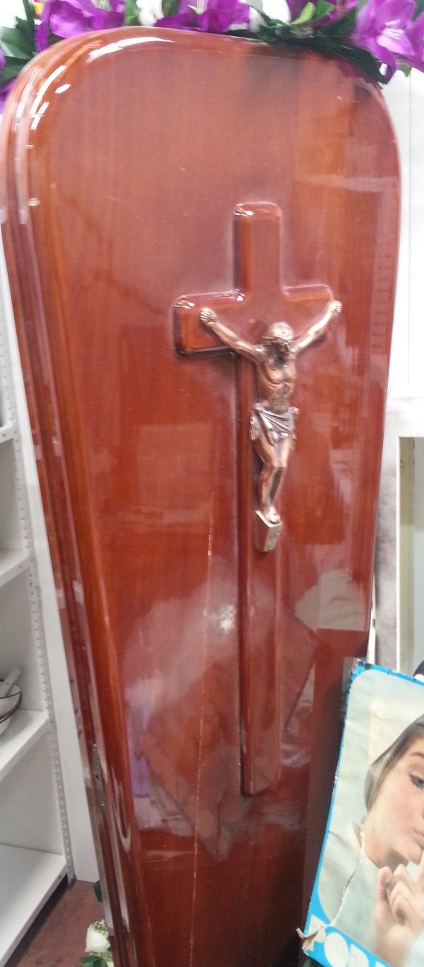 Disponemos de varios féretros totalmente útiles y muchísimos objetos relacionados con la Iglesia Cristiana para poder atrezzar o decorar iglesias y capillas y utilizar en rodajes.