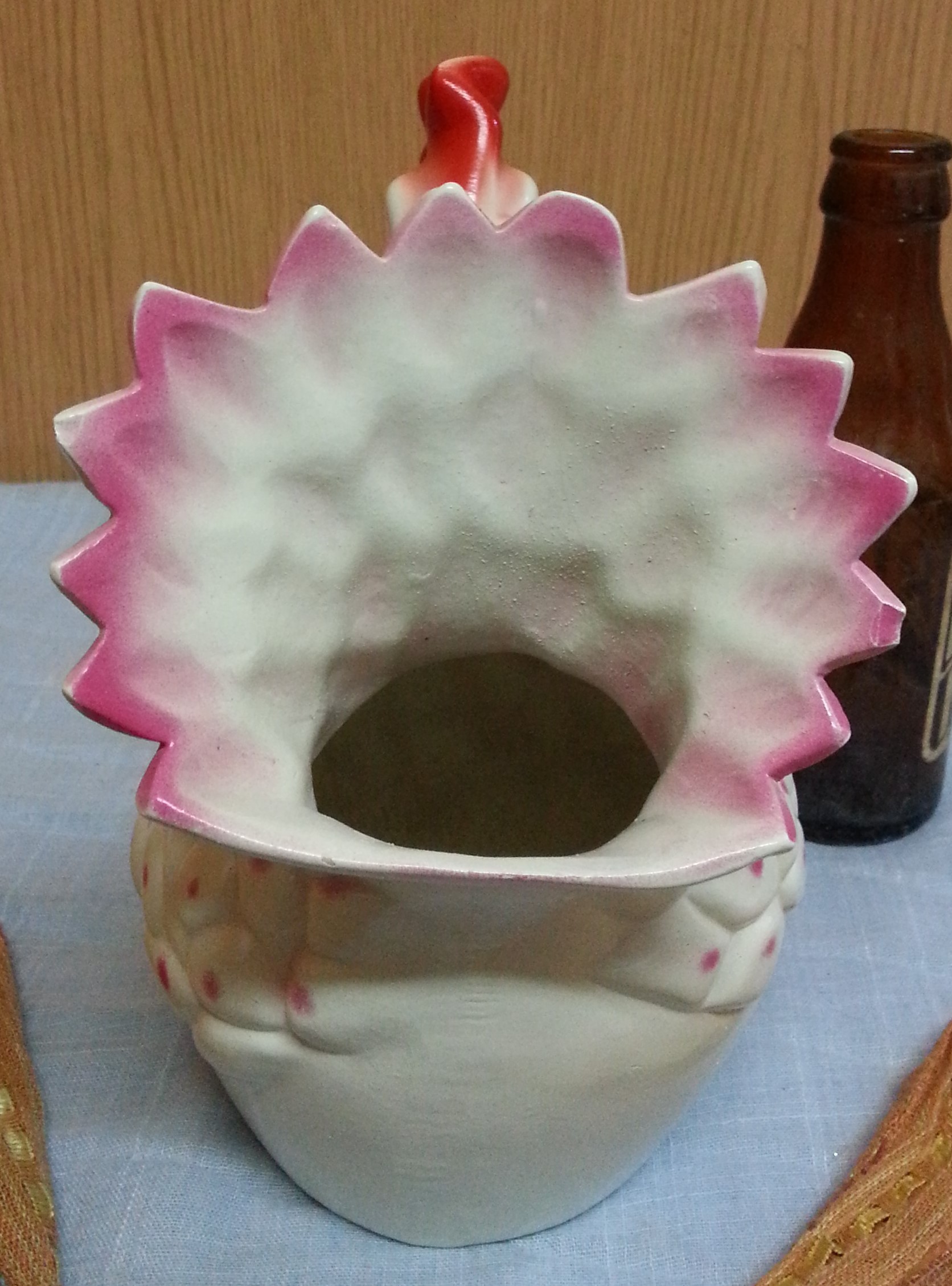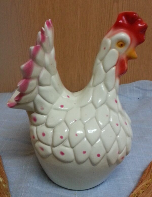 Florero vintage en cerámica con forma de gallina
