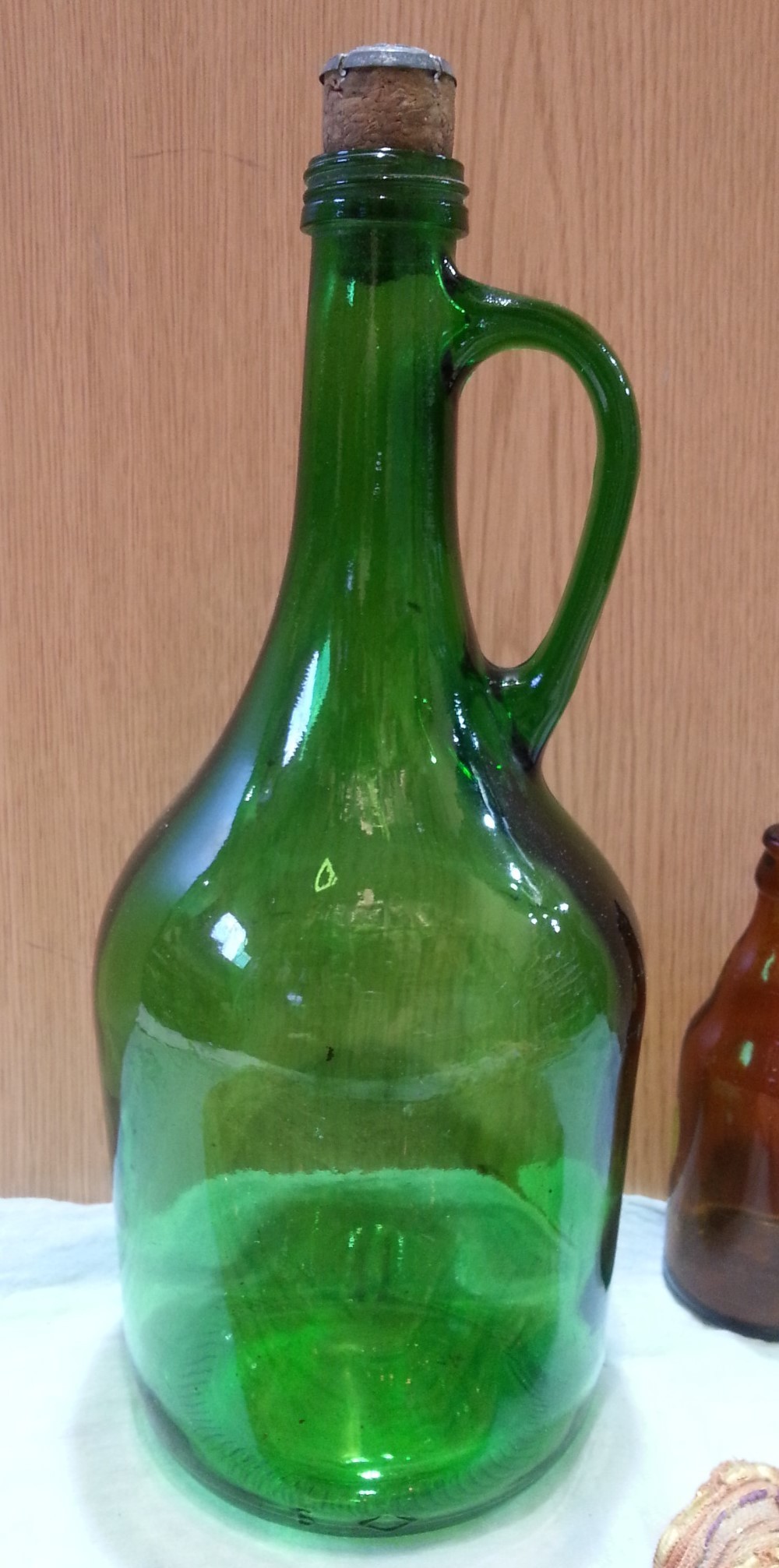 Garrafa de vidrio verde. Damajuana. Años 70