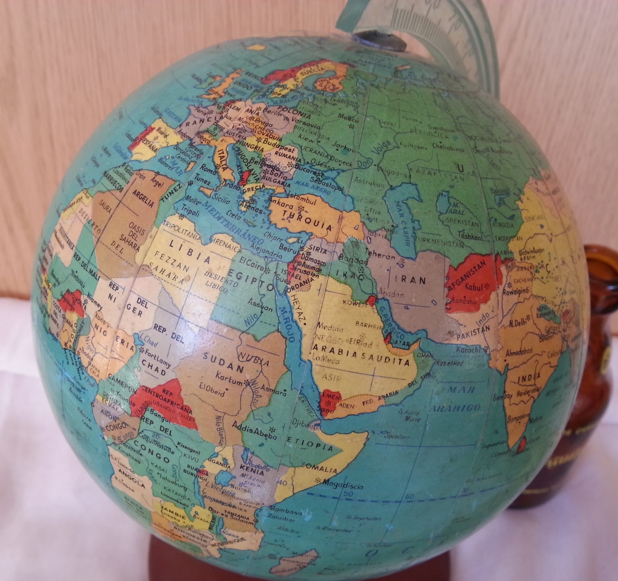 Globo terráqueo. Bola del mundo de los años 80. Preciosa pieza.