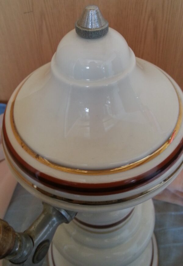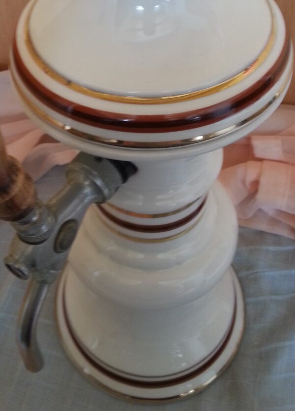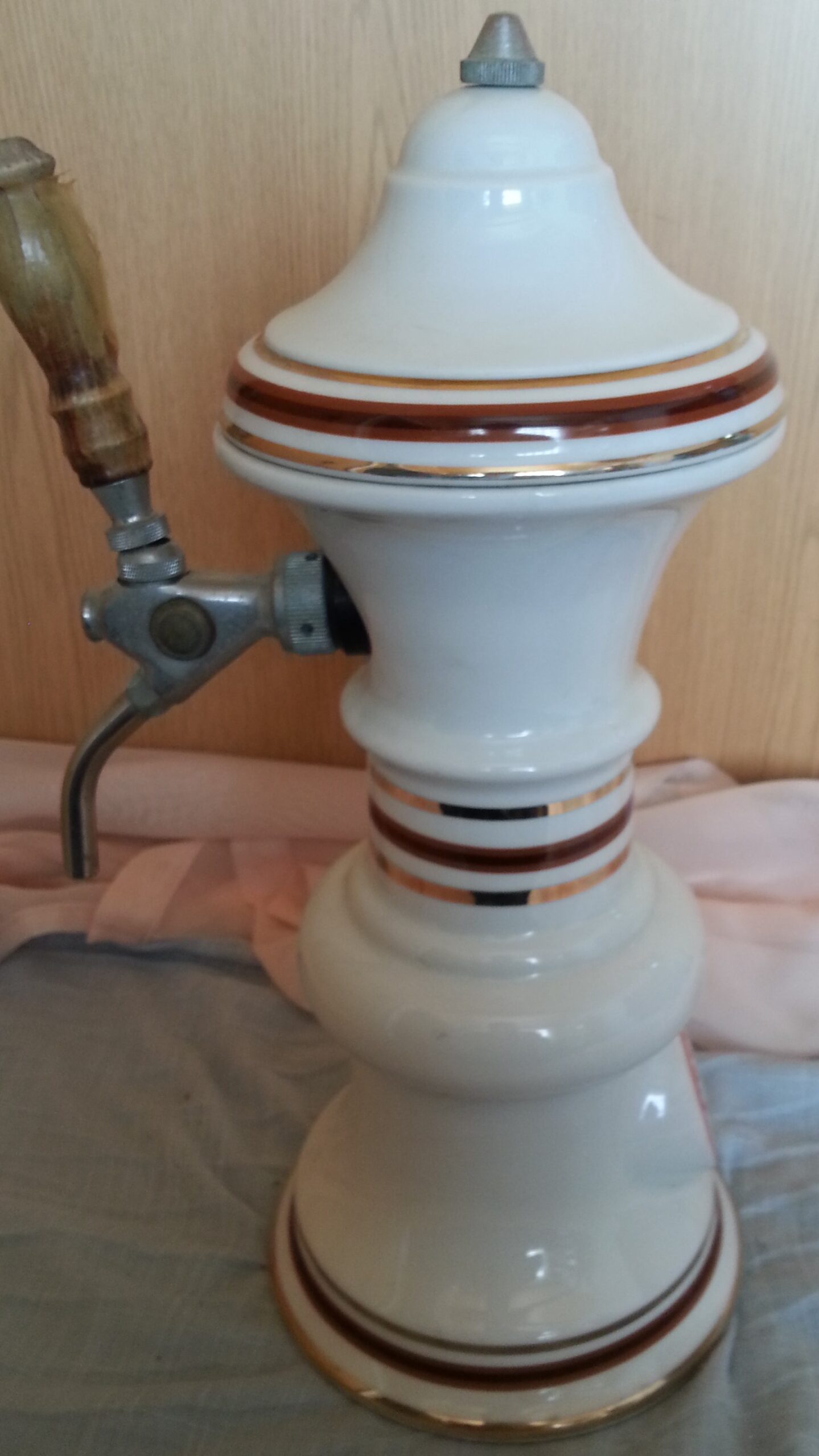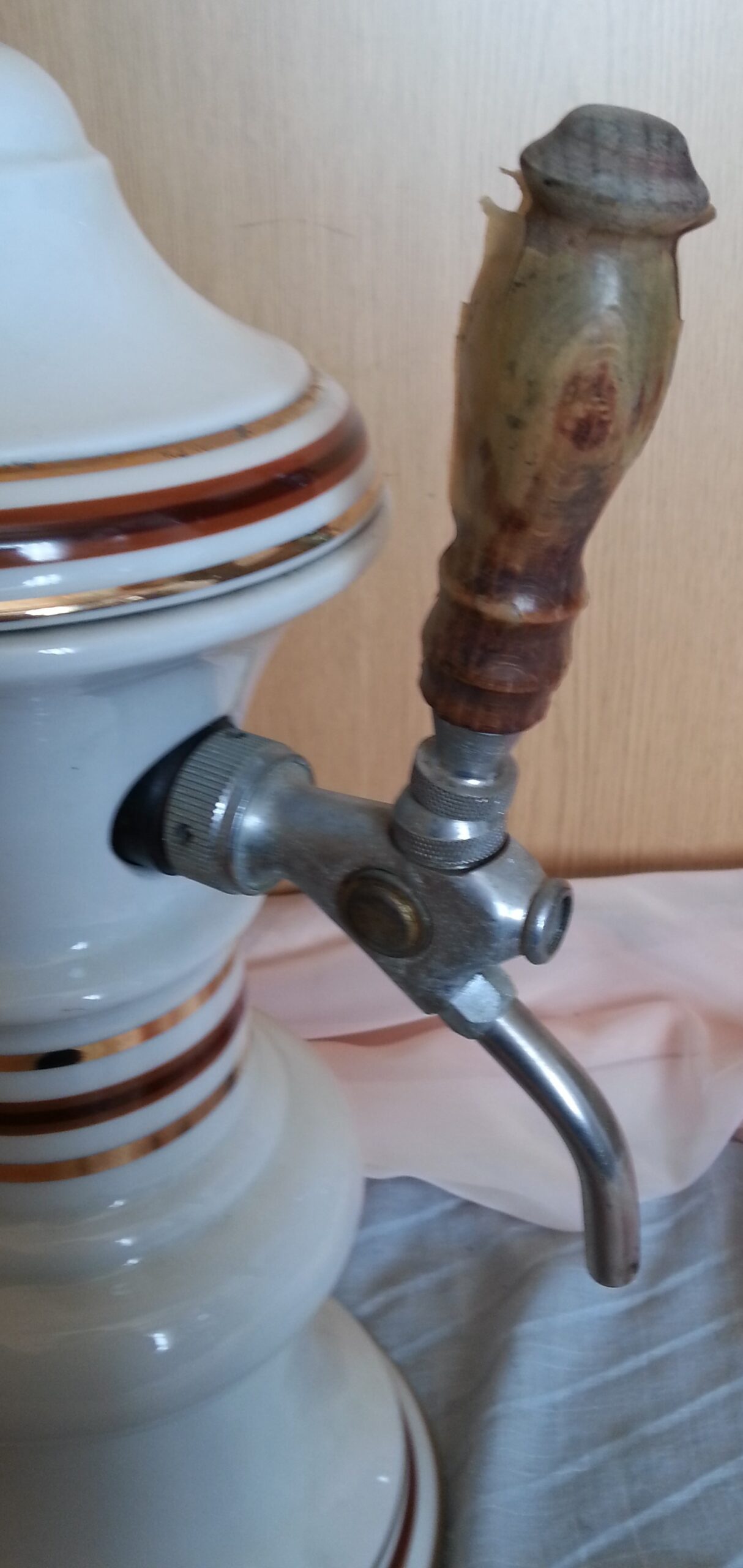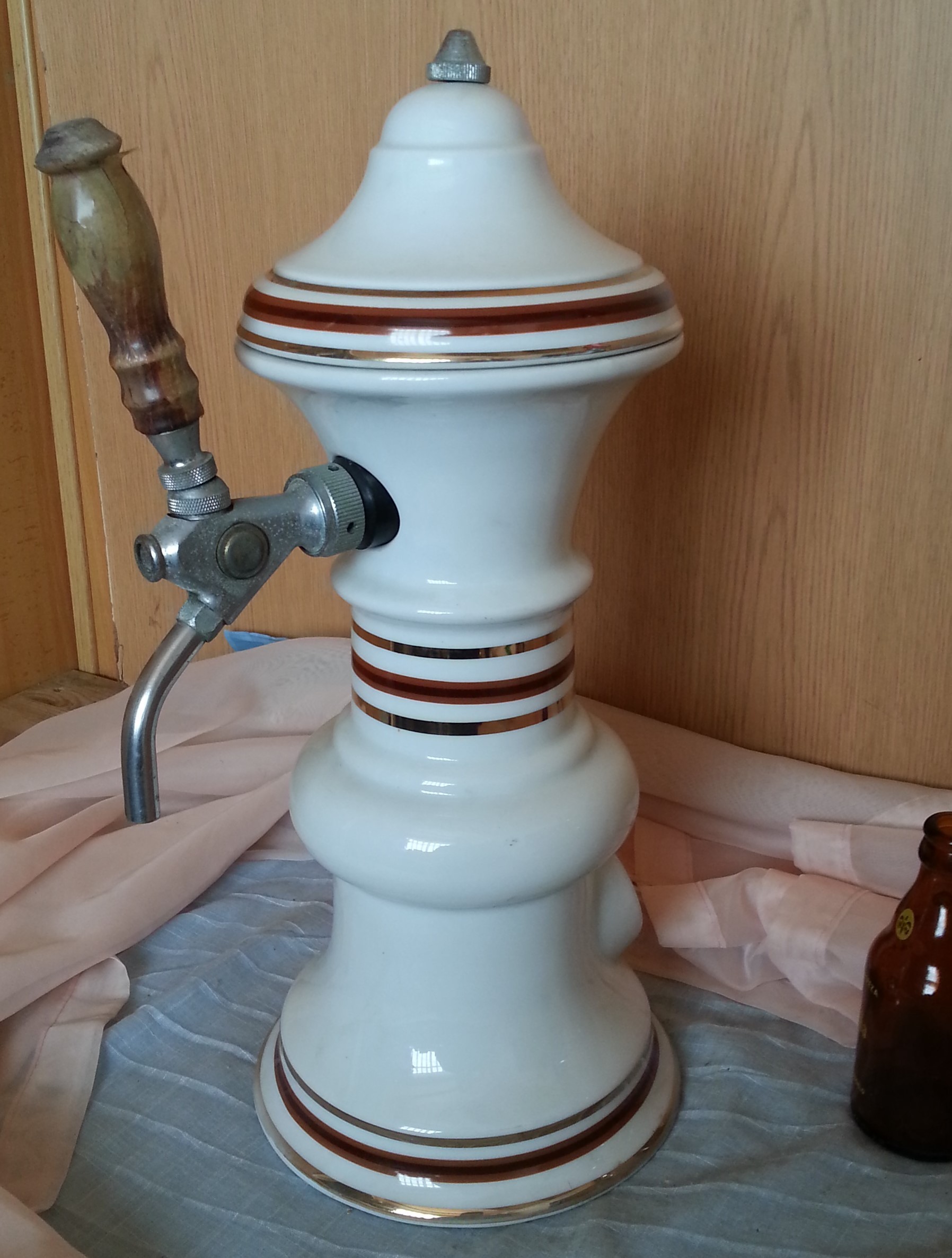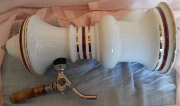 Fuerte y pesada esta columna cervecera fabricada en cerámica con remates en bronce blanco y madera, será una bonita pieza para su bodega o escaparate. Puede seguir funcionando perfectamente si se desea.
