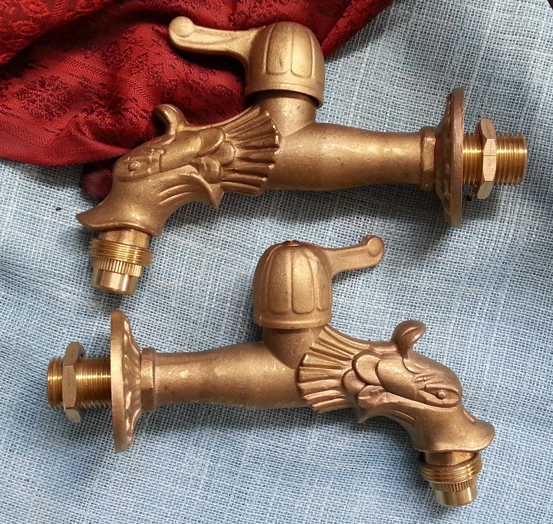 Grifos de agua. Pareja. Cabeza de dragón. Bronce. Nuevos.